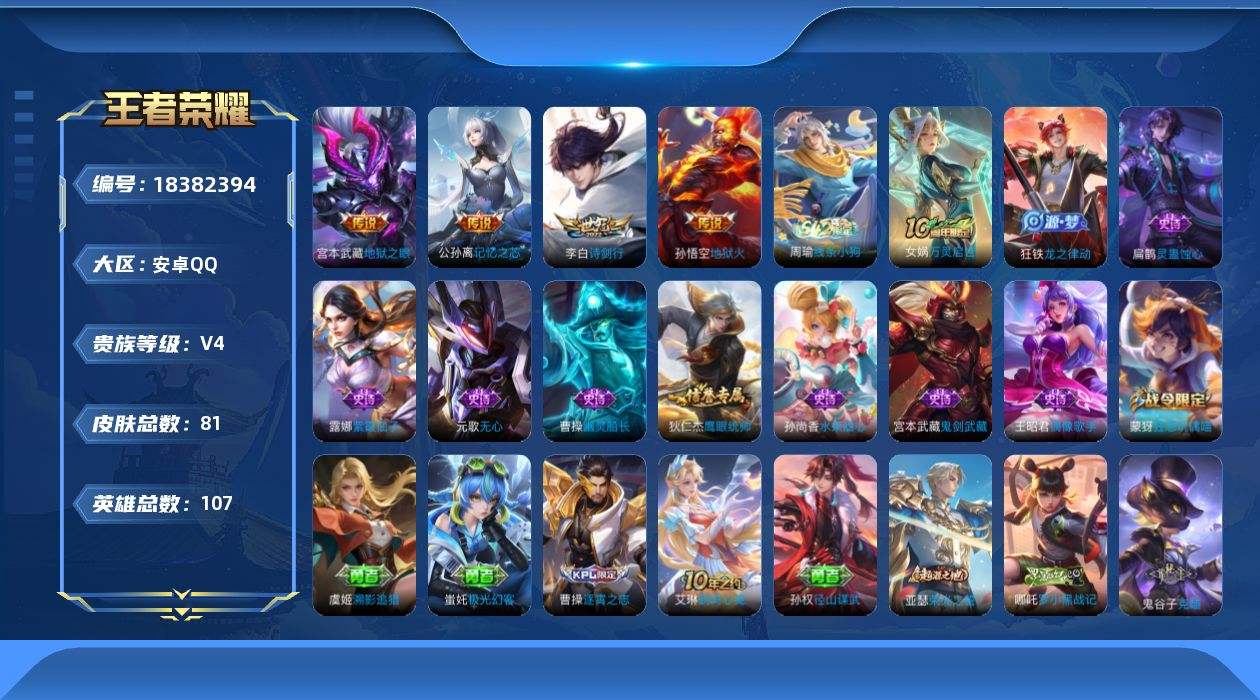 游戏区服:王者荣耀 / 安卓系统 / QQ账号