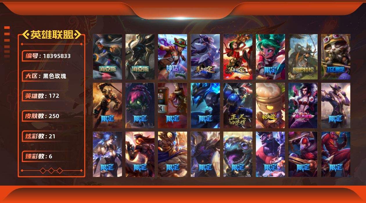 【656568】[18395833]白银段位-172英雄-250皮肤-21炫彩-0终极-4神话-39限定-22传说-71史诗【珍稀头像】:红包头像【神话皮肤】:十五周年纪念希维尔,神凰行者瑞羽圣凰艾尼维亚【海克斯皮肤】:新创战纪希维尔,零之枪骑赫卡里姆【臻彩皮肤】:无畏骑士瑟庄妮赤子初心,冰霜之刃艾瑞莉娅炫金,霸天战士雷恩加尔星啸天火,可爱可爱粉红红布里茨,魔女阿卡丽虚荣,净雪之月莫甘娜冬虹【年