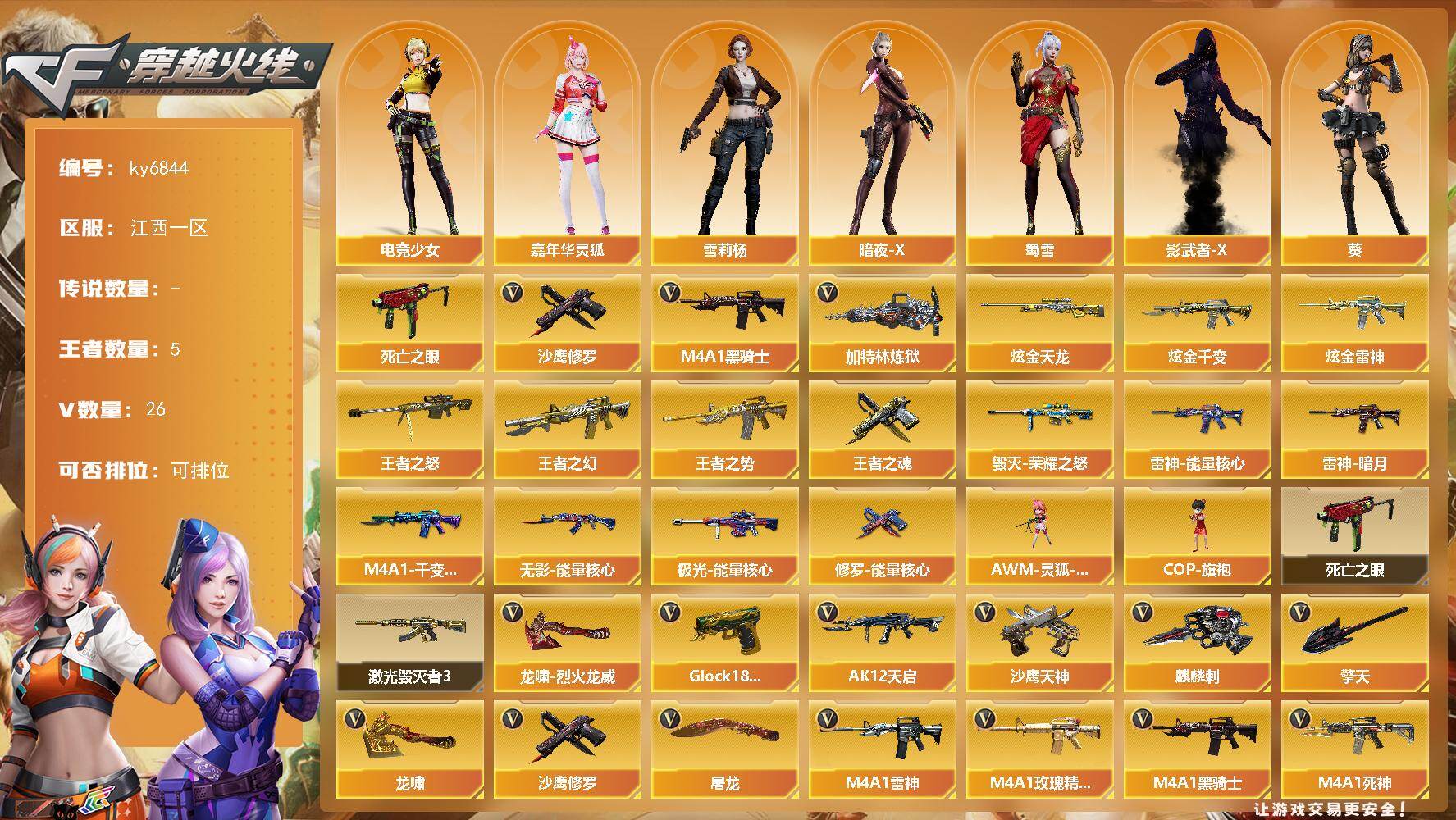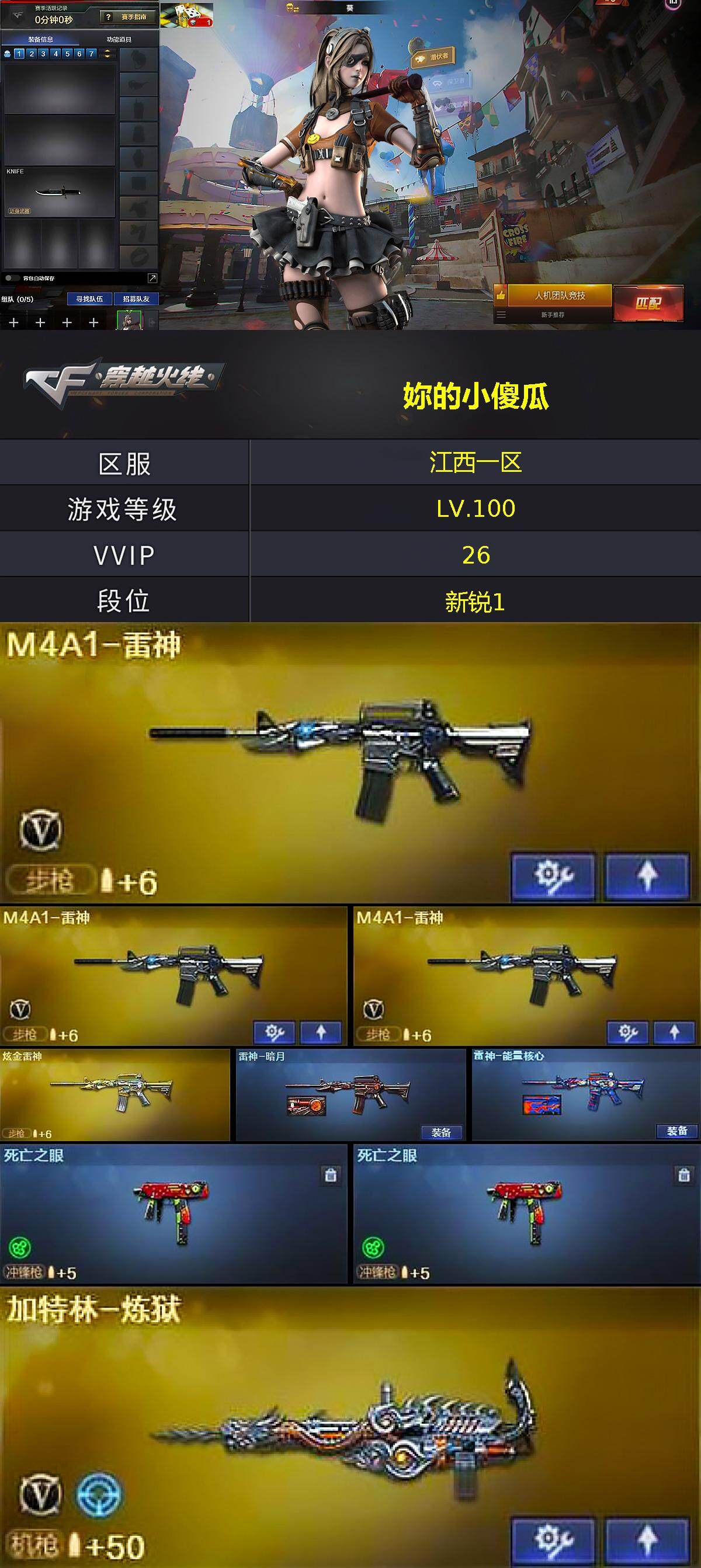 【659075】【659075】江西一区-26V-5王者武器数-3炫金武器数【热门武器】:死亡之眼*2,M4A1-黑骑士,加特林-炼狱,沙鹰-修罗*2【王者炫