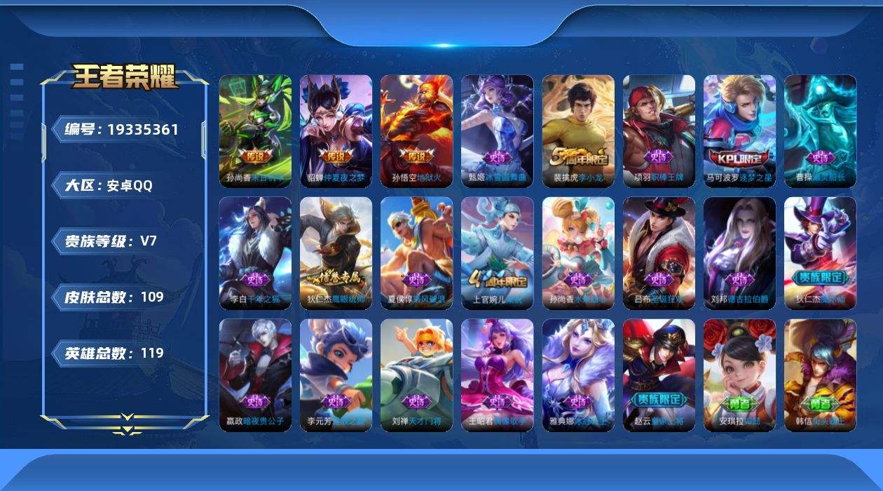 游戏区服:王者荣耀 / 安卓系统 / QQ账号