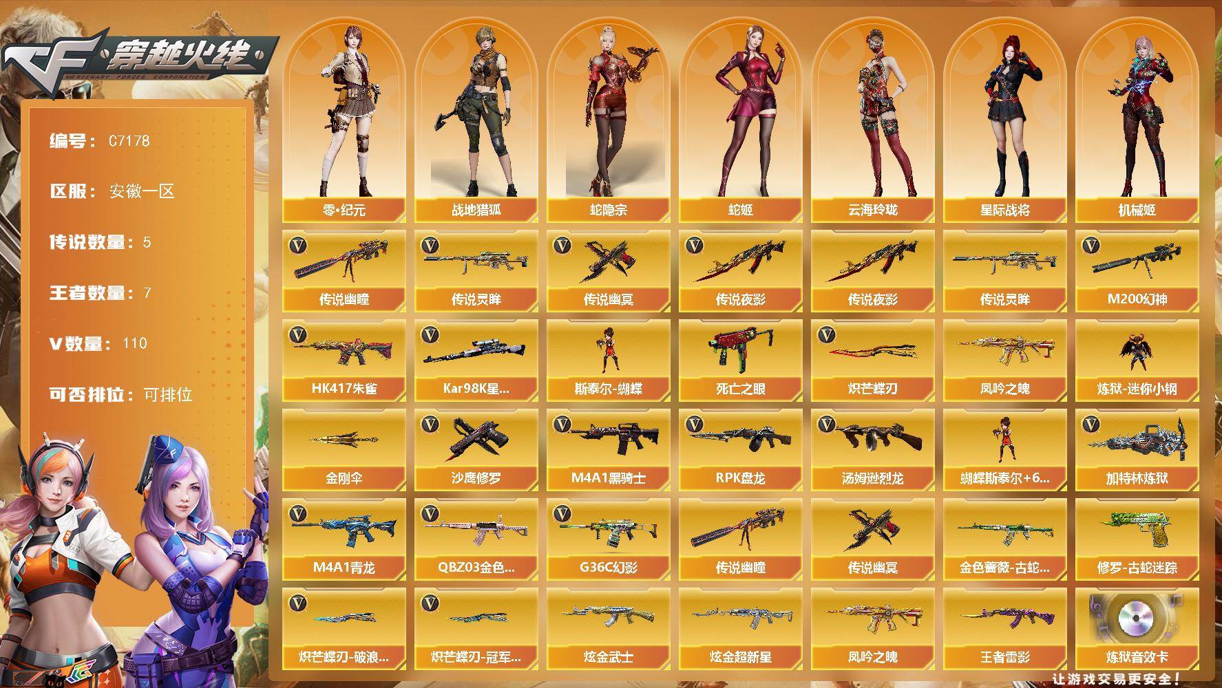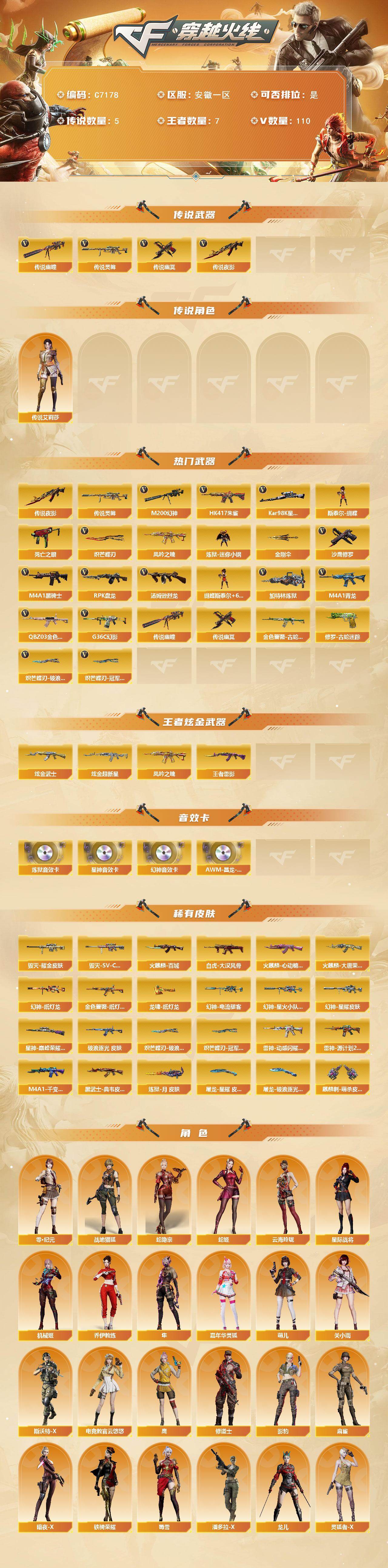 【760948】【760948】【C7178】安徽一区-112V-7王者武器数-2炫金武器数【传说武器】:传说夜影,传说灵眸,传说幽瞳,传说幽冥*2【传说角色