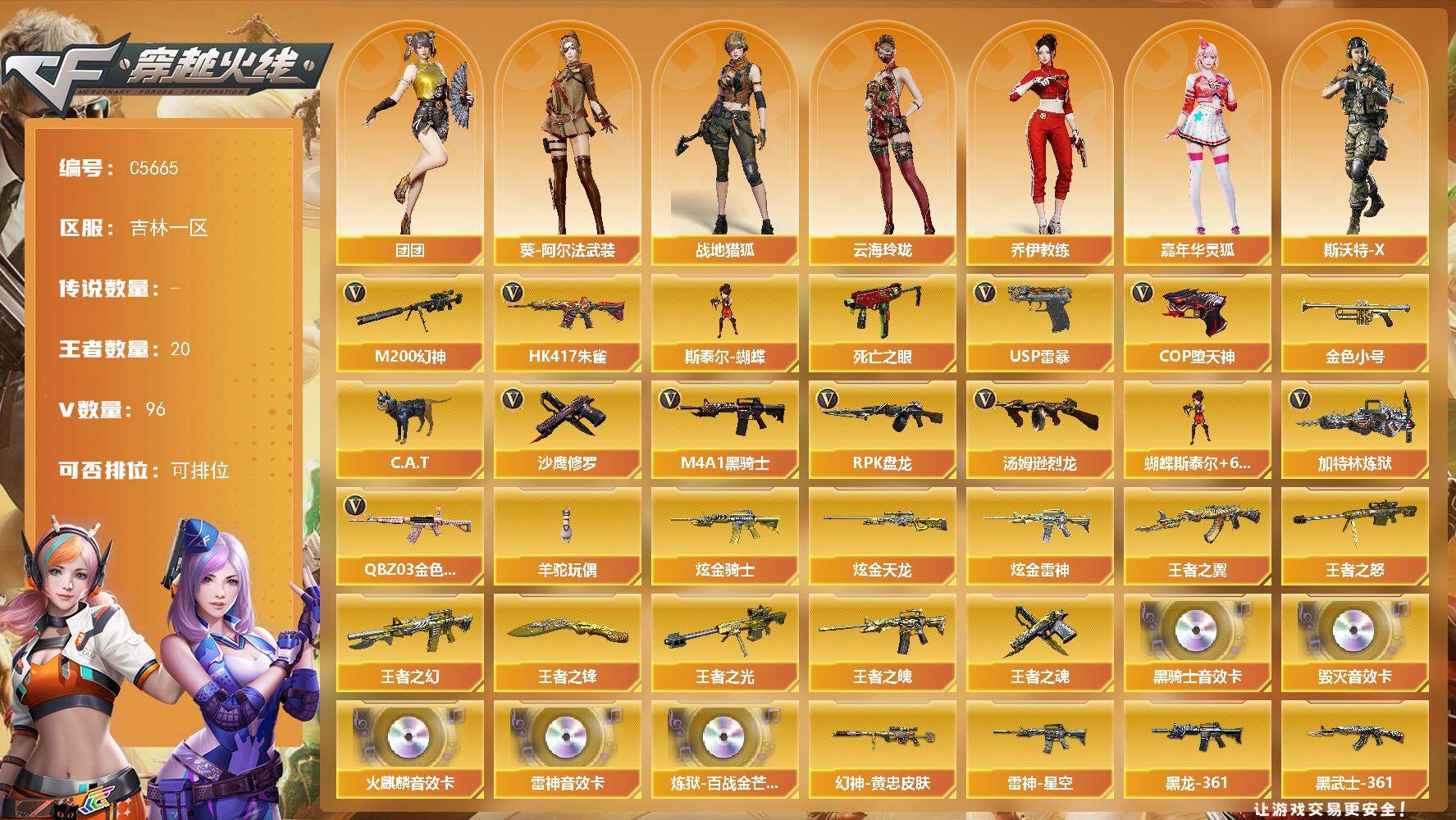【761129】【761129】【C5665】吉林一区-104V-20王者武器数-3炫金武器数【热门武器】:QBZ03-金色蔷薇,HK417-朱雀,M200-