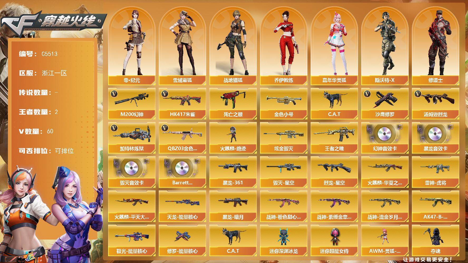 【761135】【761135】【C5513】浙江一区-60V-2王者武器数-1炫金武器数【热门武器】:QBZ03-金色蔷薇,HK417-朱雀,M200-幻神