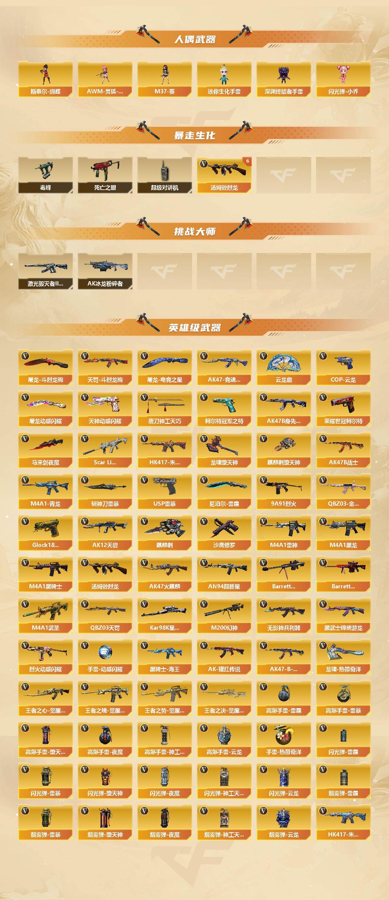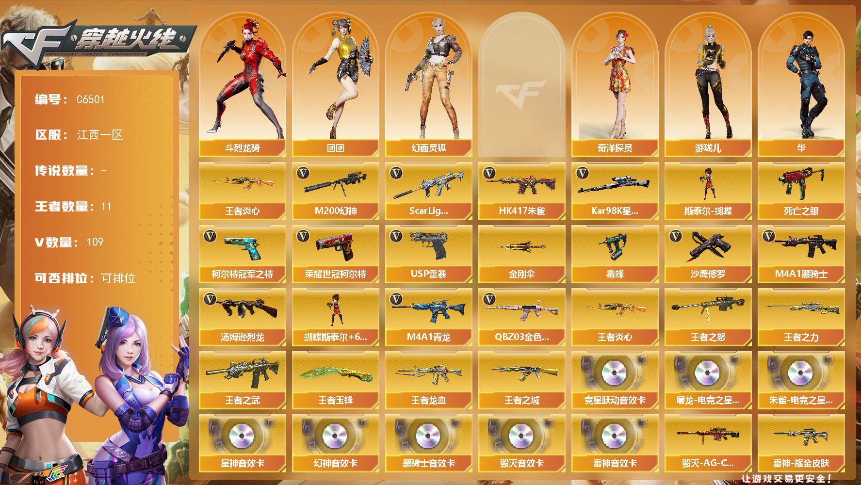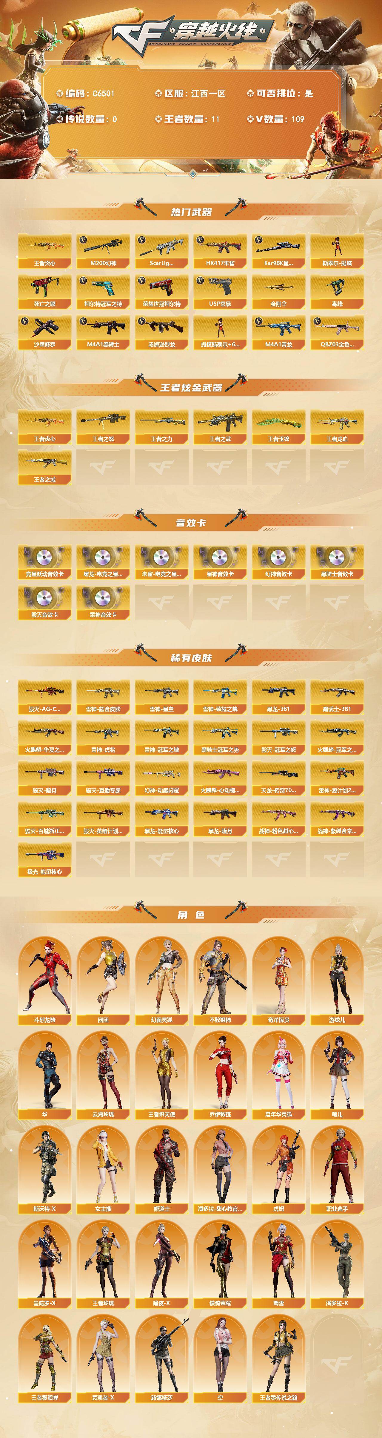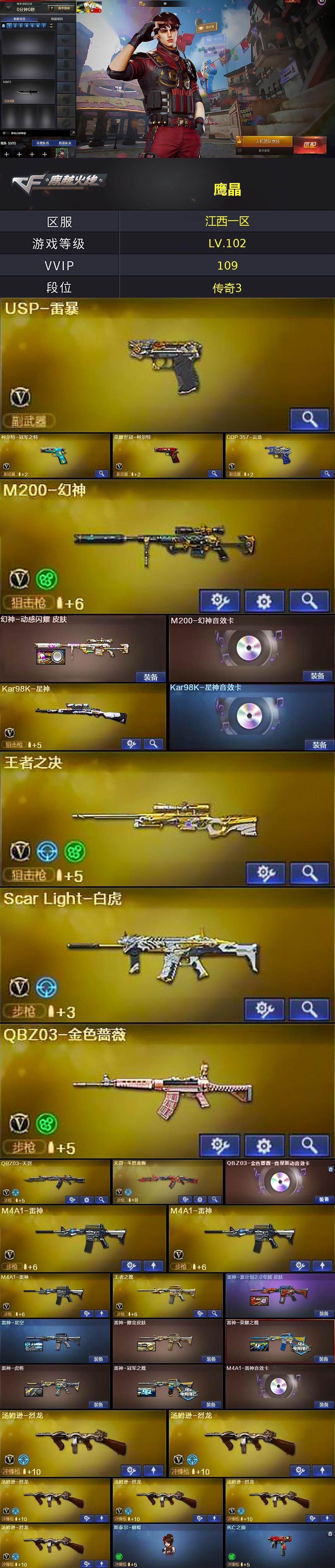 【761692】【761692】【C6501】江西一区-114V-11王者武器数-0炫金武器数【热门武器】:QBZ03-金色蔷薇,Scar Light-白虎,