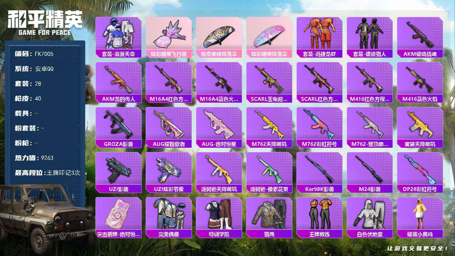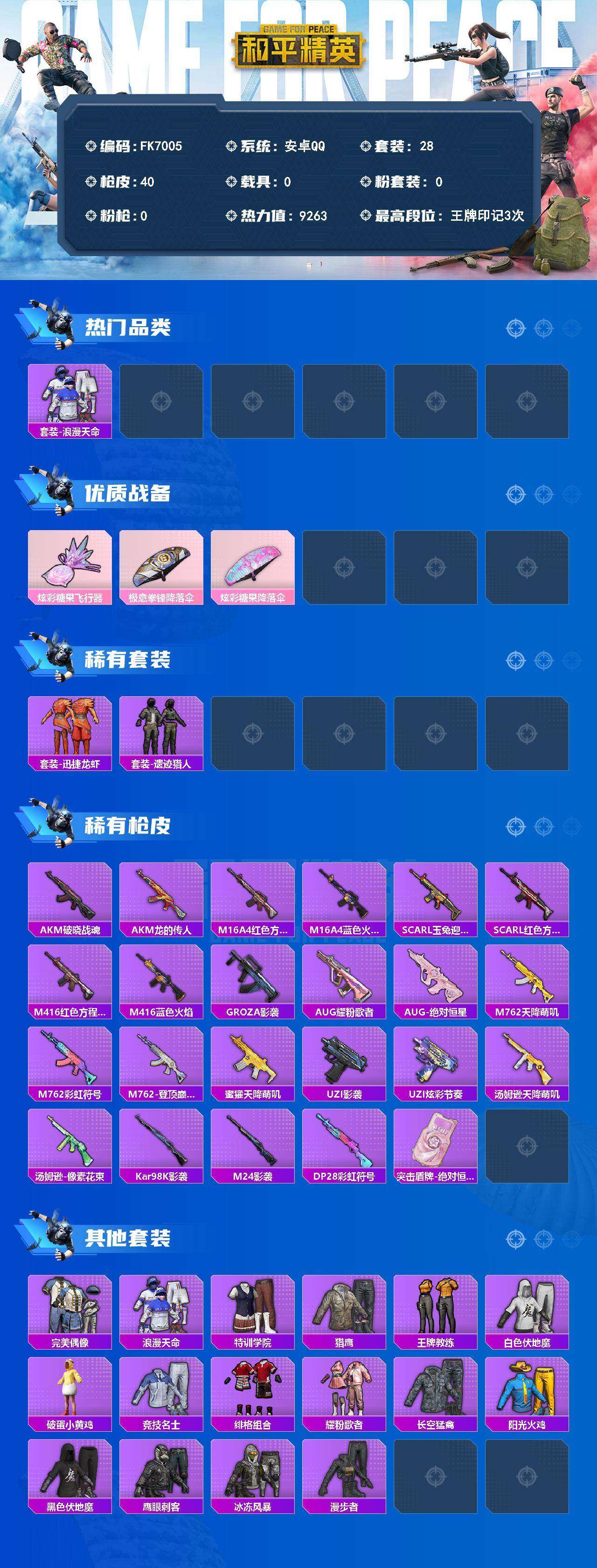 游戏区服:和平精英 / 安卓系统 / QQ账号