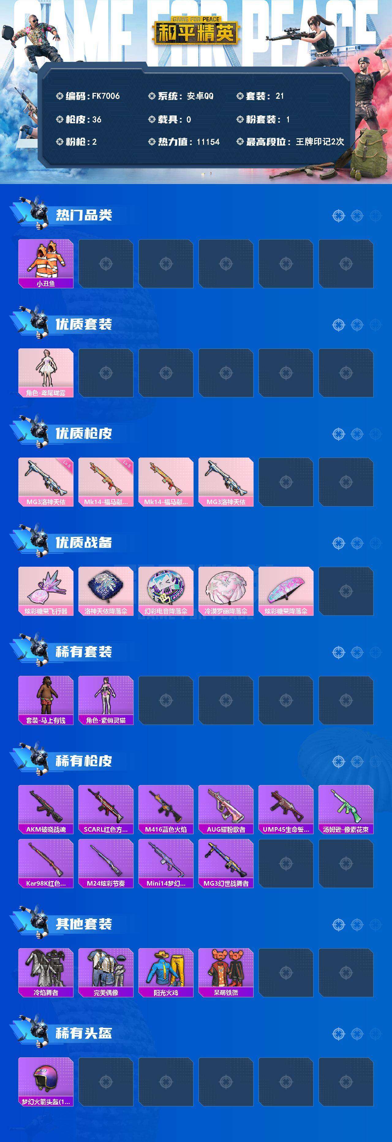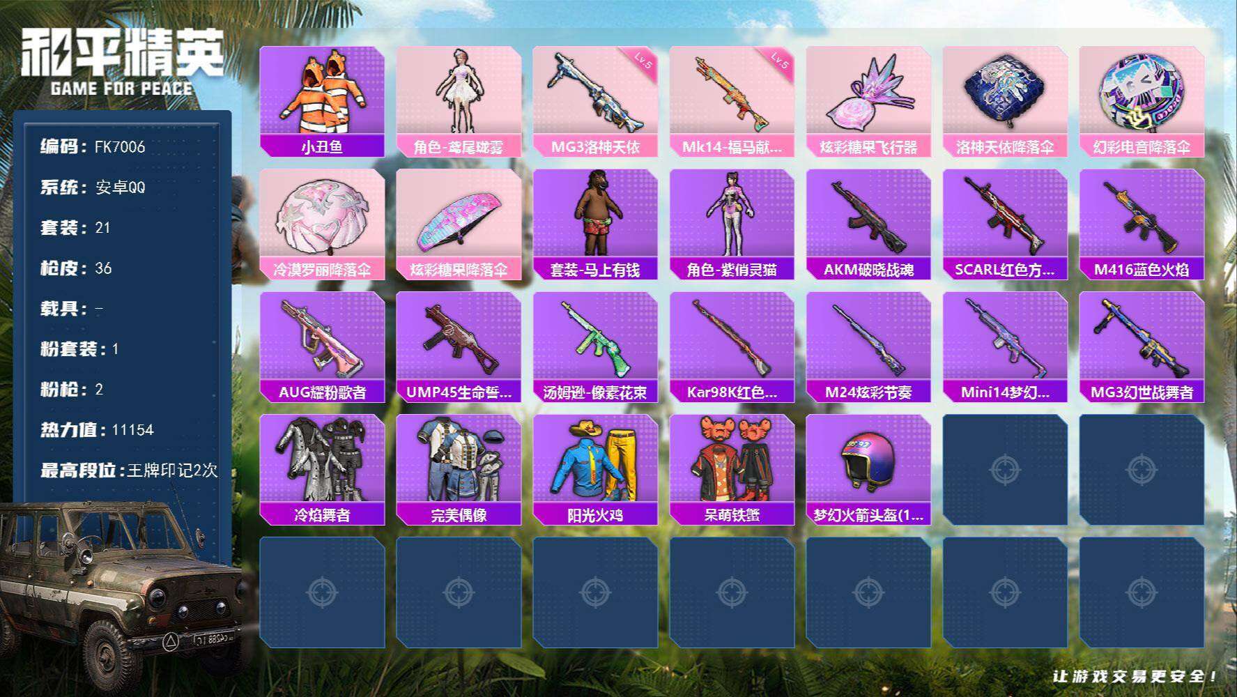 游戏区服:和平精英 / 安卓系统 / QQ账号
