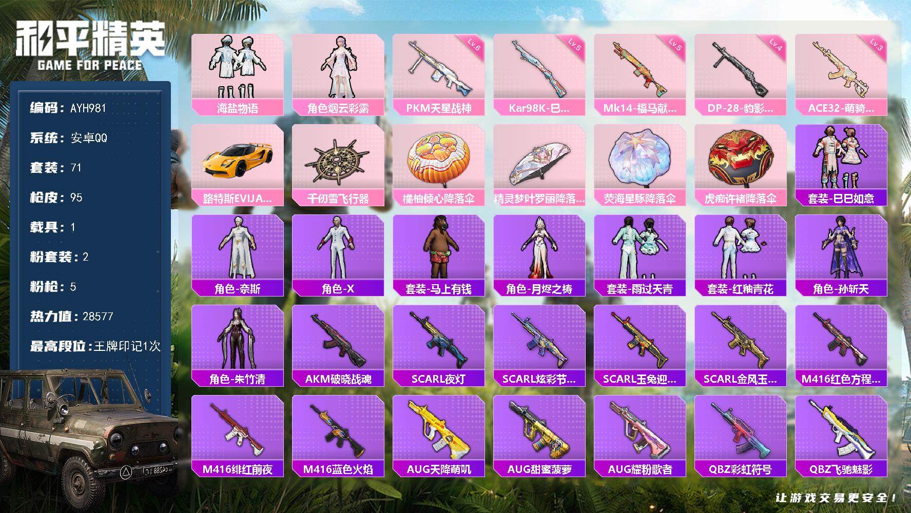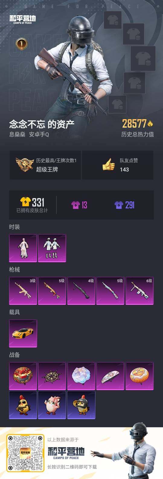 游戏区服:和平精英 / 安卓系统 / QQ账号