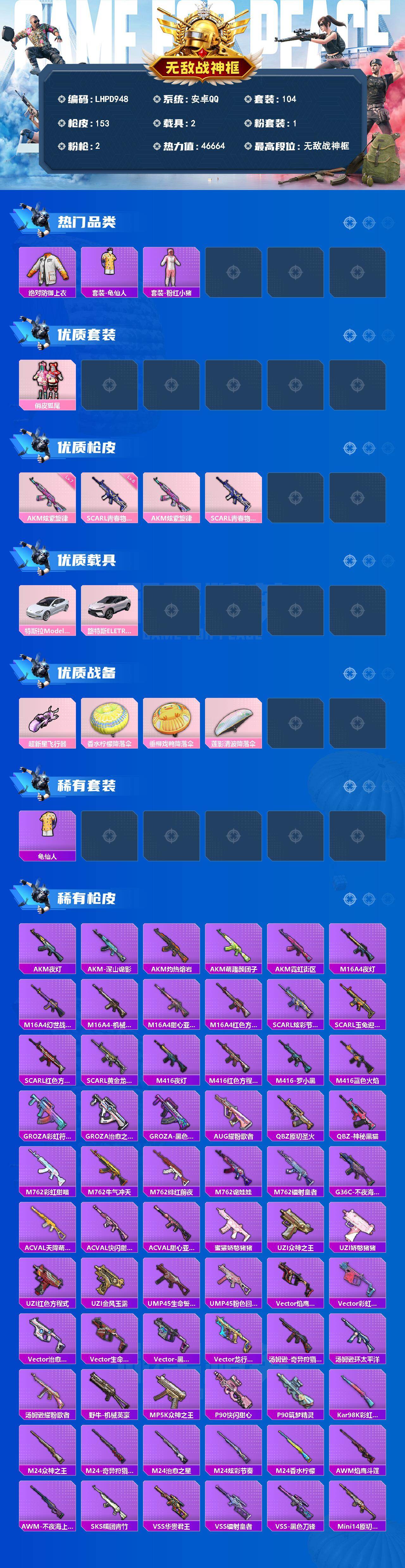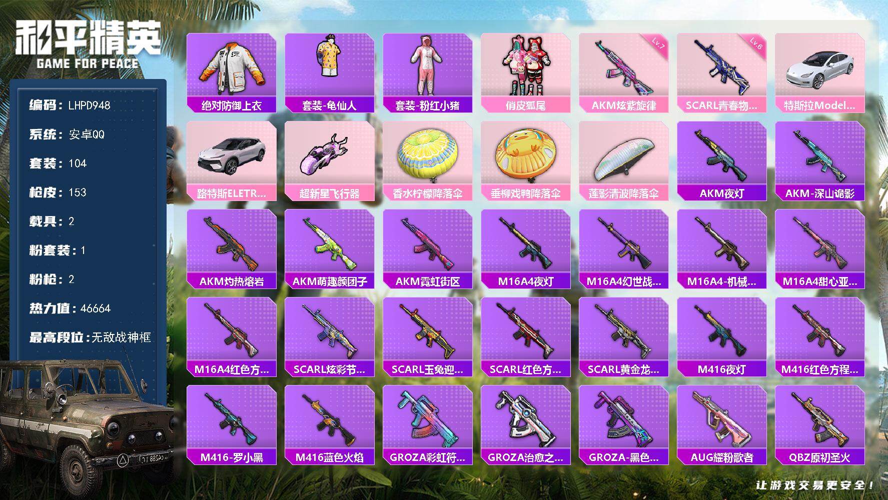 游戏区服:和平精英 / 安卓系统 / QQ账号
