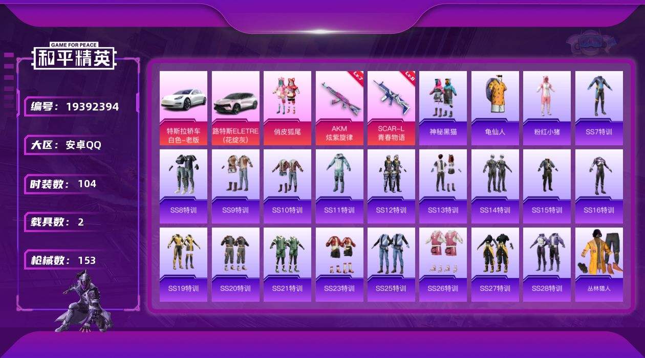 【763241】【可二次】【安卓QQ】AKM-炫紫旋律 特斯拉3银色 SCAR-L-青春物语 俏皮狐尾