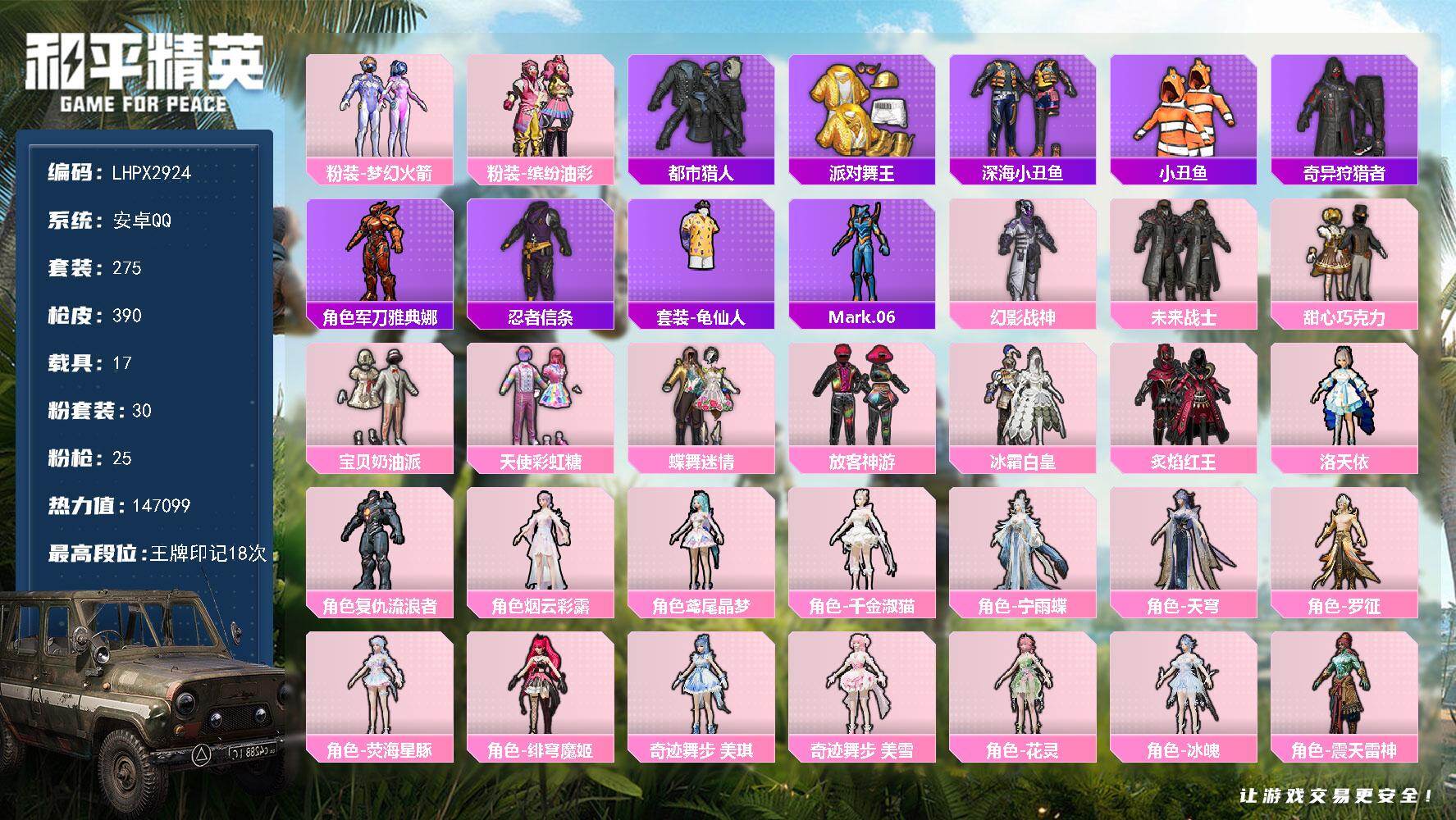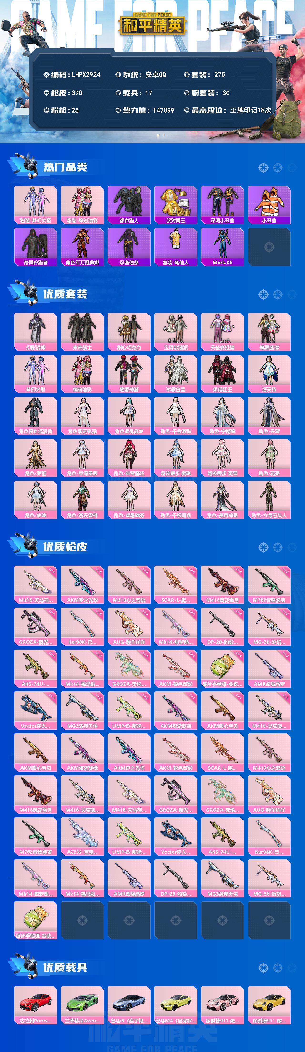 游戏区服:和平精英 / 安卓系统 / QQ账号