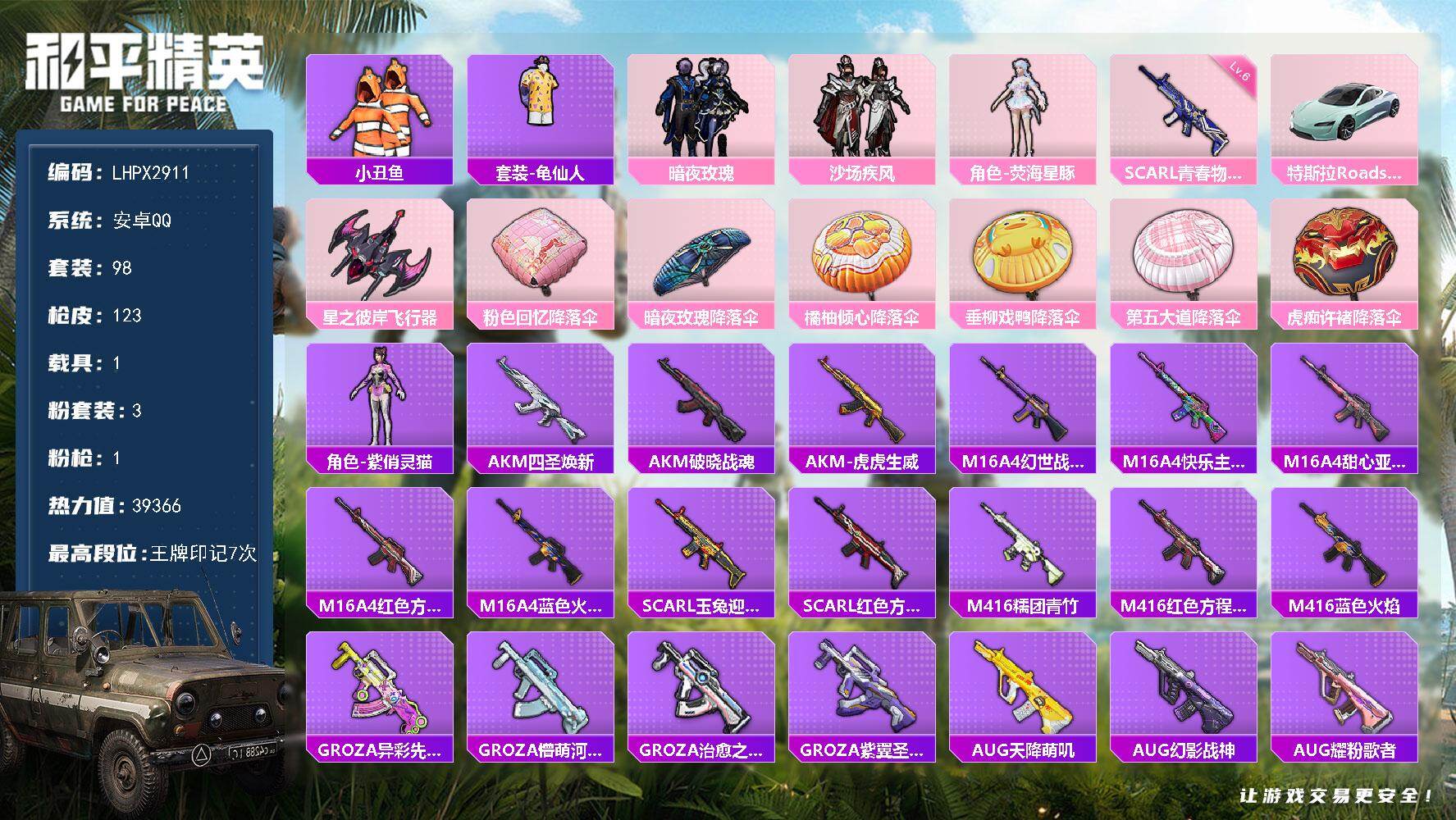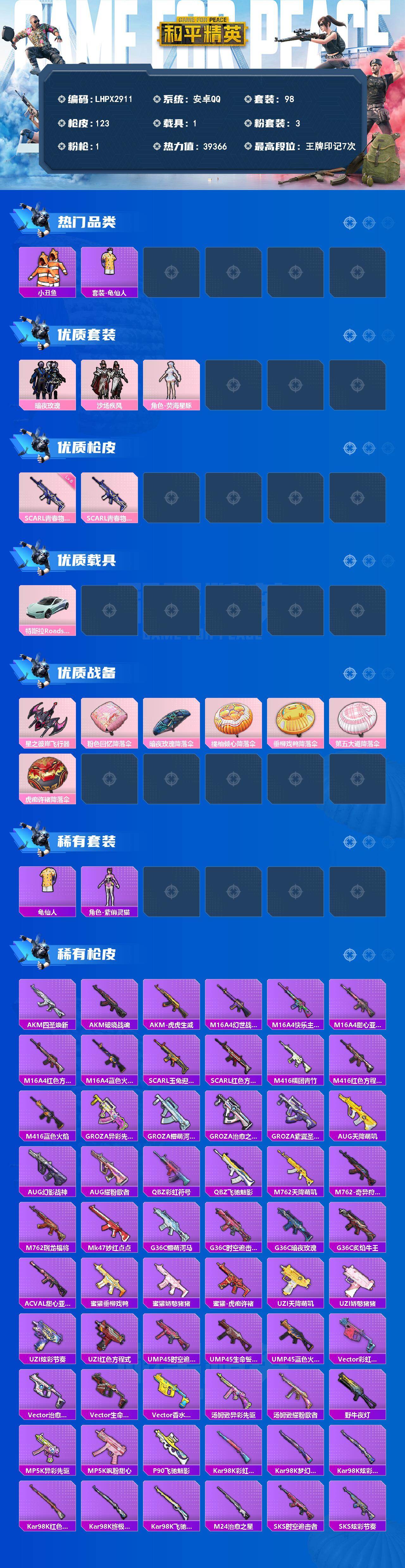 游戏区服:和平精英 / 安卓系统 / QQ账号