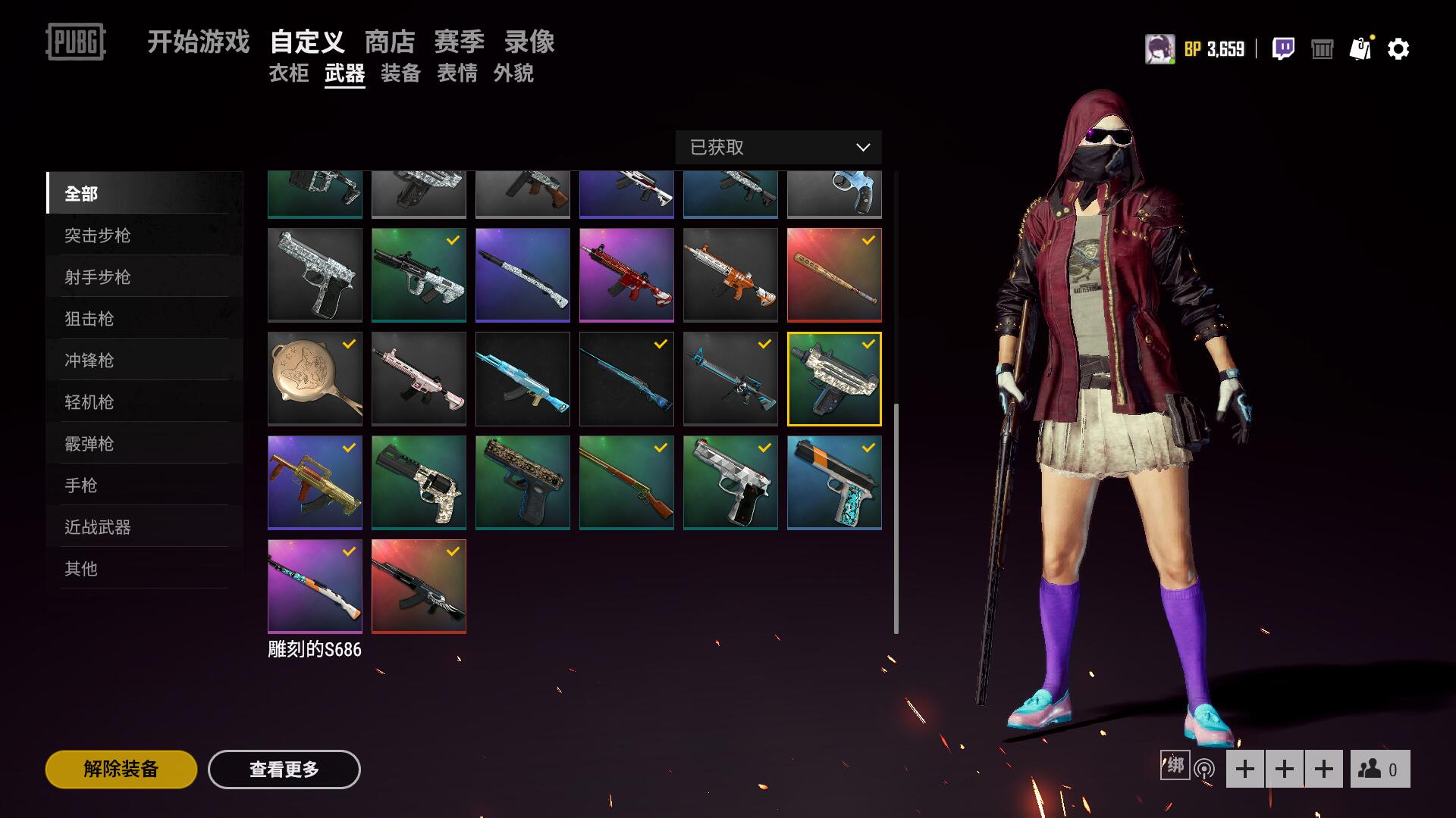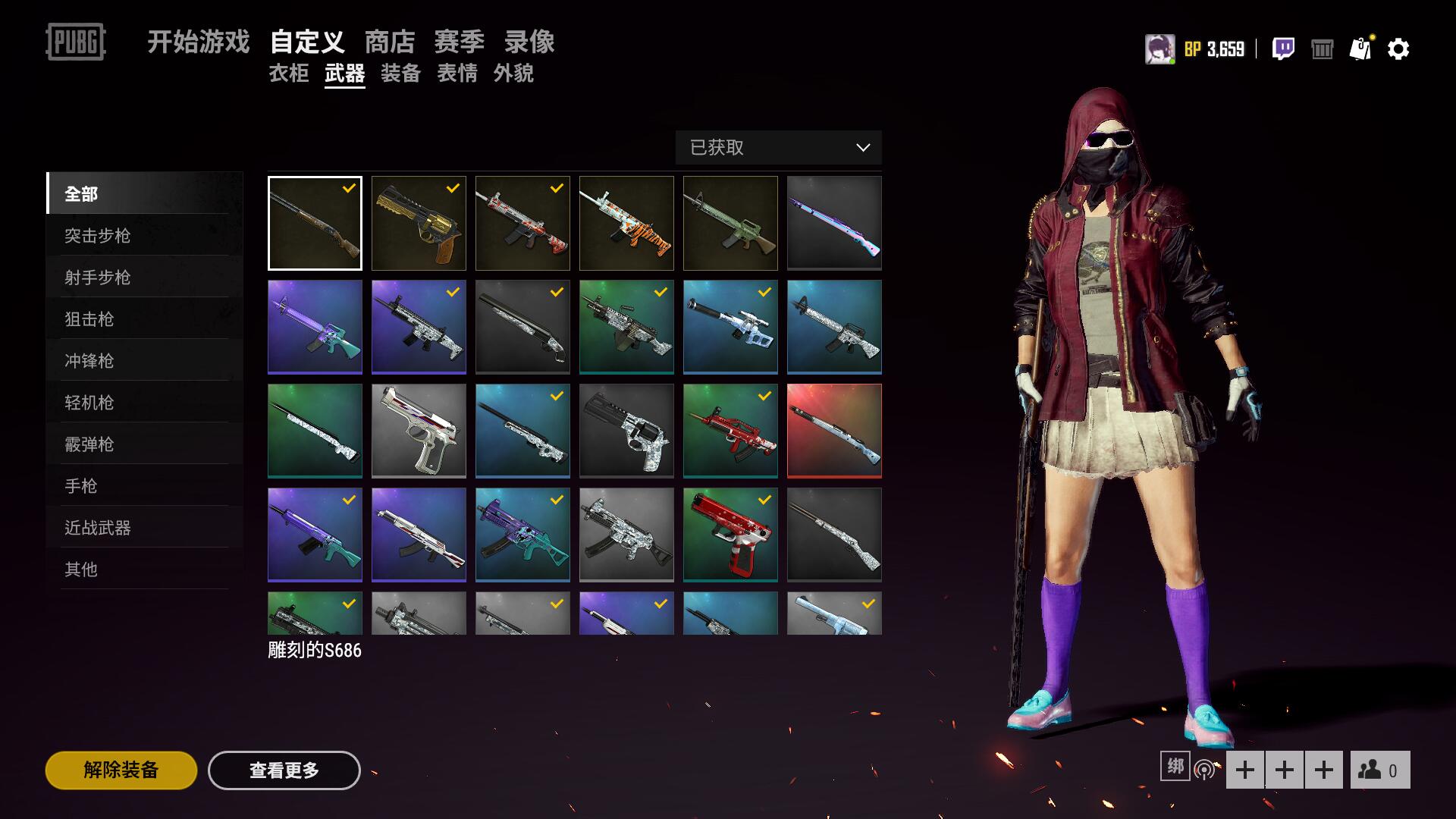 通行证满级皮肤衣服都多 校园白短裙 骷髅上装 pai赛事套装 雪地专属粉色帽子+紫色太阳镜 黑旗袍 shourd棒球衫套 兄弟同盟套装 等等主播衣服 枫叶M4 粉色猪M4 辉煌AK 玩具AK等98k各种皮肤 steam账号另有gta5 巫师三等各种游戏