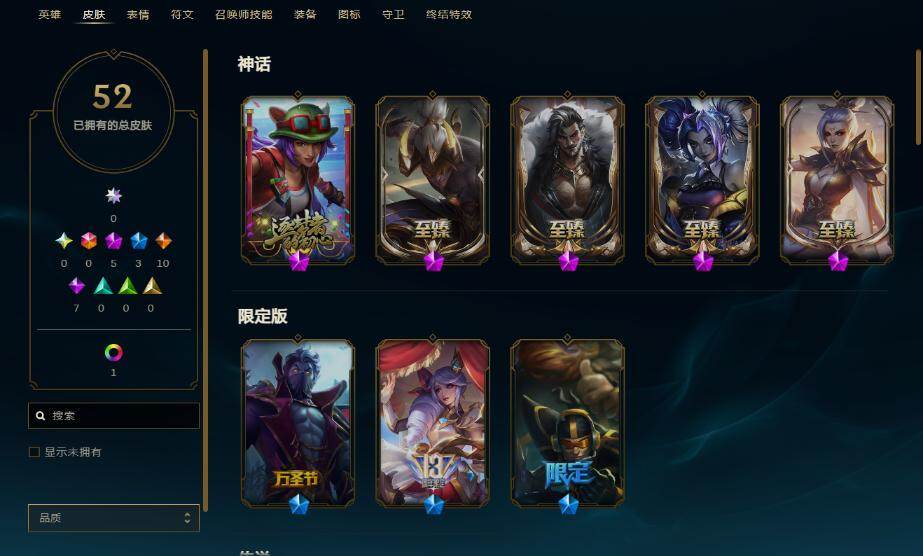 【5735769】【LOLX381】100英雄/52皮肤/5神话/3限定/1臻彩/9炫彩/10传说/7史诗/黑铁/至臻魔域梦魇泽丽/至臻黑夜使者李青/玉剑传说无影竞星/至臻黑夜使者李青/至臻玉剑传说武剑仙/伯爵卡萨丁/Fnatic嘉文四世/战场女武神凯尔/地狱之门卫士加里奥/幻灵战斗队长厄运小姐/灵魂莲华瑟提/神龙尊者昼日真龙亚索/神王德莱厄斯/未来战士凯特琳/星之守护者金克丝/耀星女皇拉克丝/
