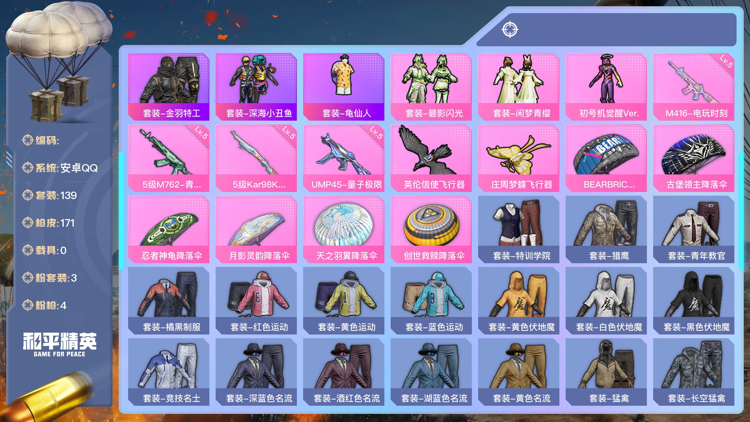 游戏区服:和平精英 / 安卓系统 / QQ账号