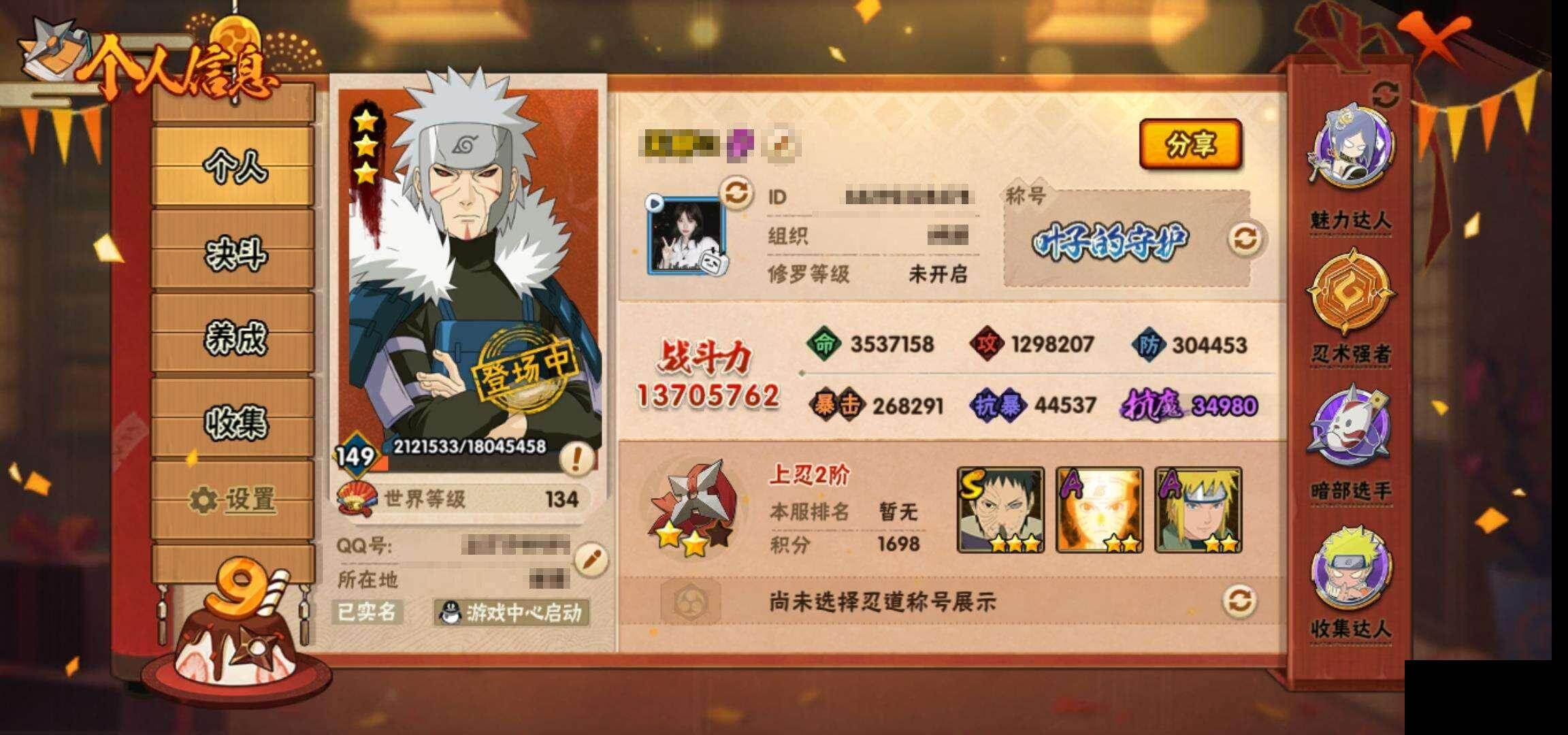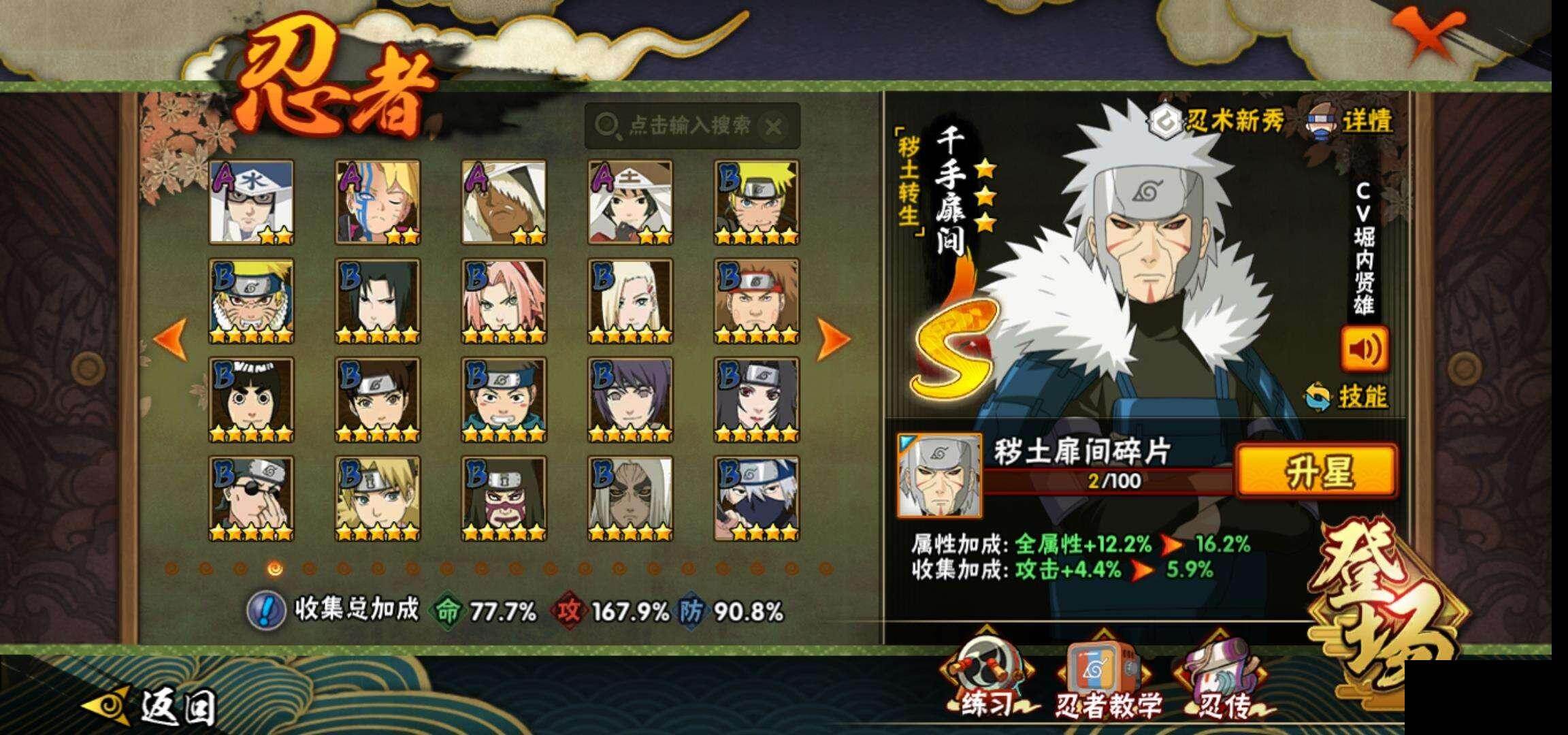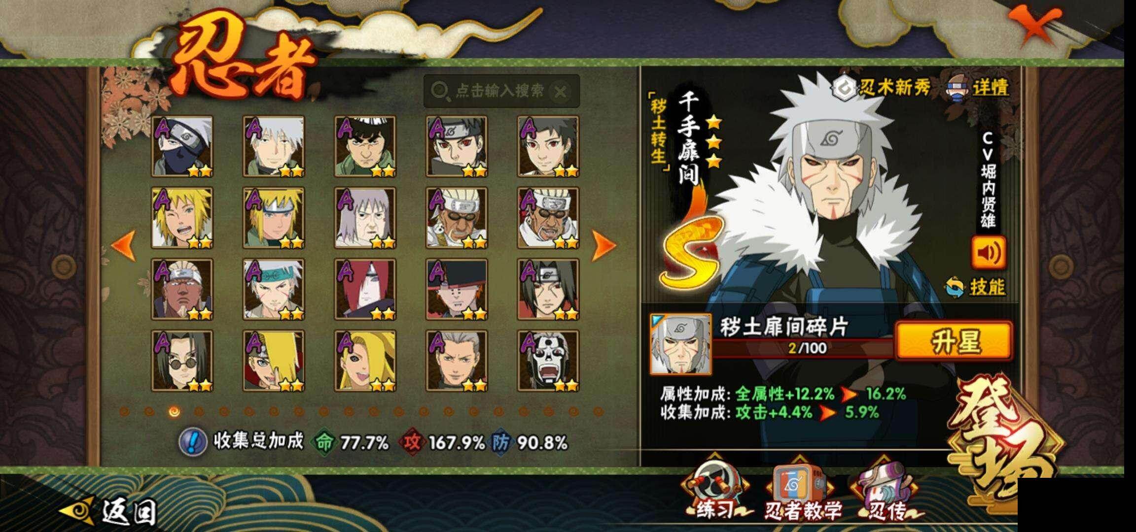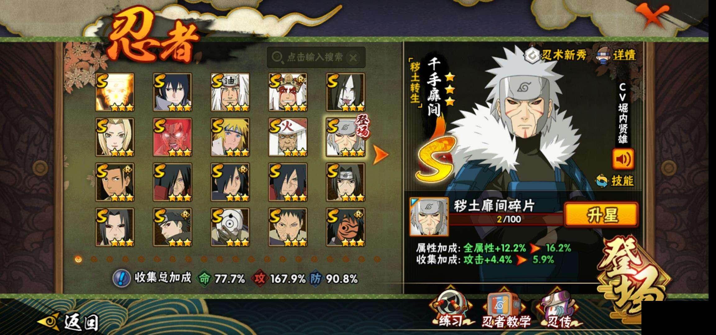 【HYZ1534】V14/战力1370W/S忍27/A忍37/宇智波斑 【秽土转生】/2星波风水门「新春限定」/纲手/2星我爱罗「疾风传」/2星飞段「死司凭血」/2星宇智波止水/2星宇智波鼬「新春限定」/自来也/2星奇拉比「忍界大战」/千手扉间 【秽土转生】/3星千手柱间「木叶创立」/药师兜【仙人模式】/3星大筒木桃式/2星长十郎「六代目水...