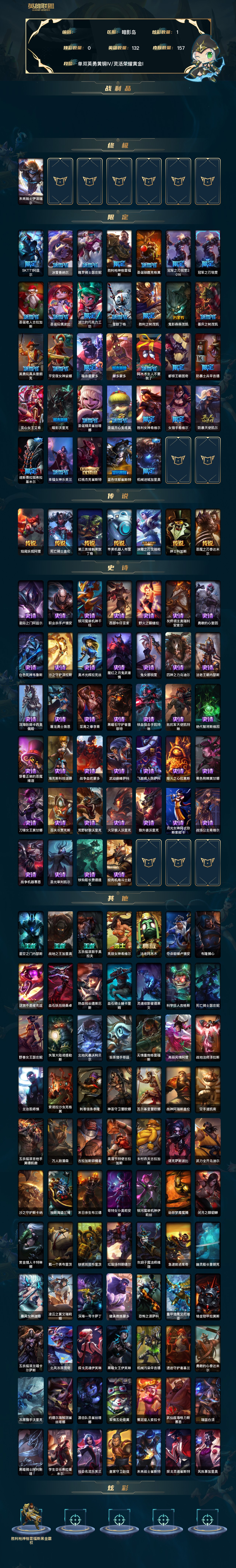 【8958264】【II9ZNC1BC】132英雄/159皮肤总数(原皮+炫彩)/157皮肤/0卓越/1终极/0神话/33限定/0臻彩/1炫彩/7传说/39史诗/ 单双英勇黄铜IV/灵活荣耀黄金I 账号等级:99;【终极皮肤】/未来战士伊泽瑞尔【限定皮肤】/SKTT1阿兹尔/冰雪兽纳尔/魄罗骑士瑟庄妮/胜利枪神格雷福斯/圣诞驯鹿克格莫/冠军之刃锐雯2016/冠军之刃锐雯/圣诞老人古拉加斯/圣诞玩