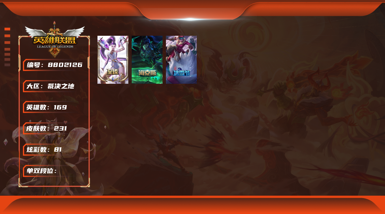 【10040825】[8802126]【gpz_946852】 t21795【裁决之地】231皮肤 81炫彩 3臻彩 4神话/22限定/24传说/169英雄 账号等级:529 云顶神话:1 单双排段位:不屈白银【重要头像】星守金克丝炫彩 沐浴震惊 【重要皮肤】KDA二代卡莎至臻 摄魂使者薇恩 胜利剑圣易 胜利女神娑娜 胜利之王泰达米尔 胜利巨口克格莫 胜利机器人布里茨 胜利女