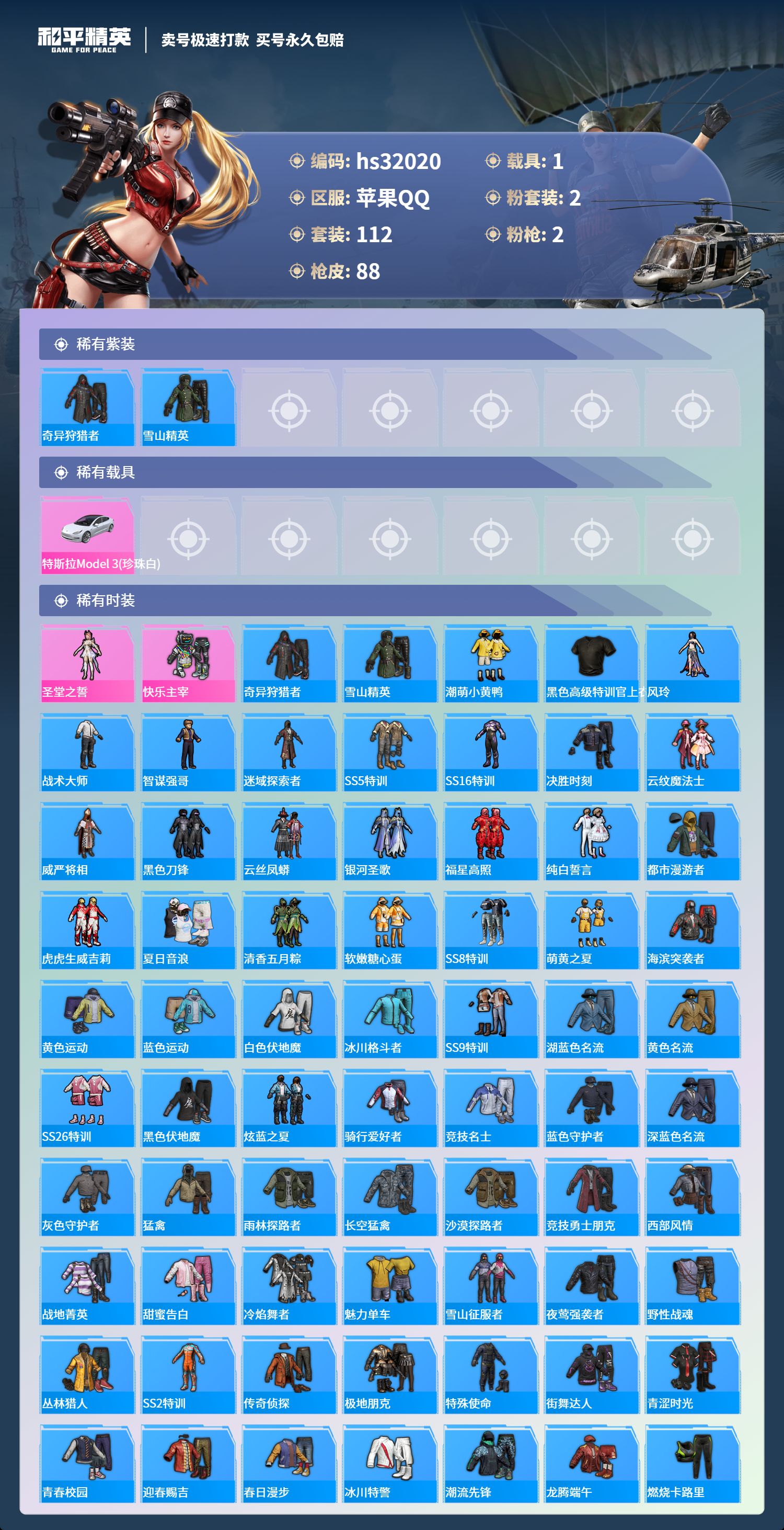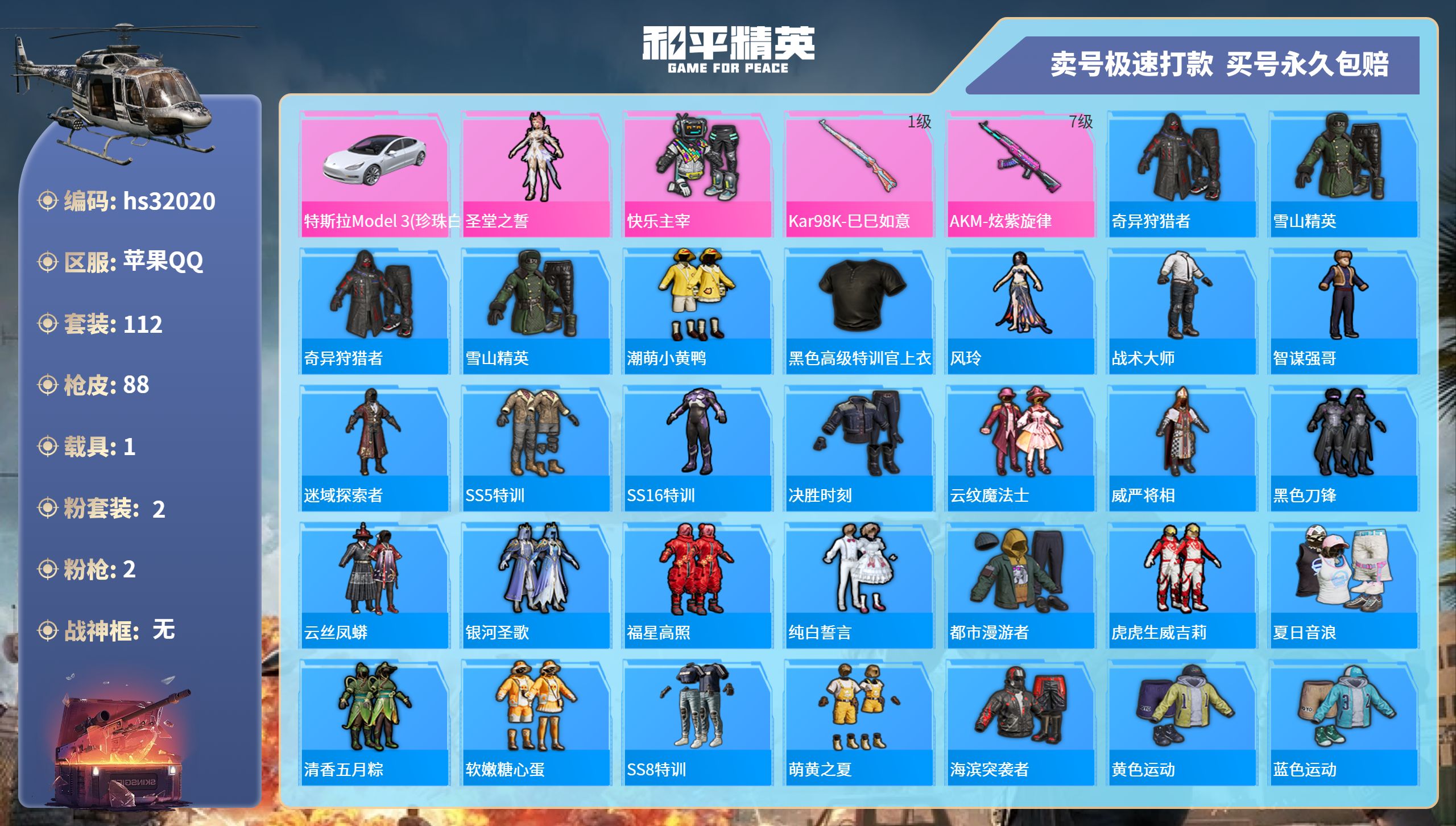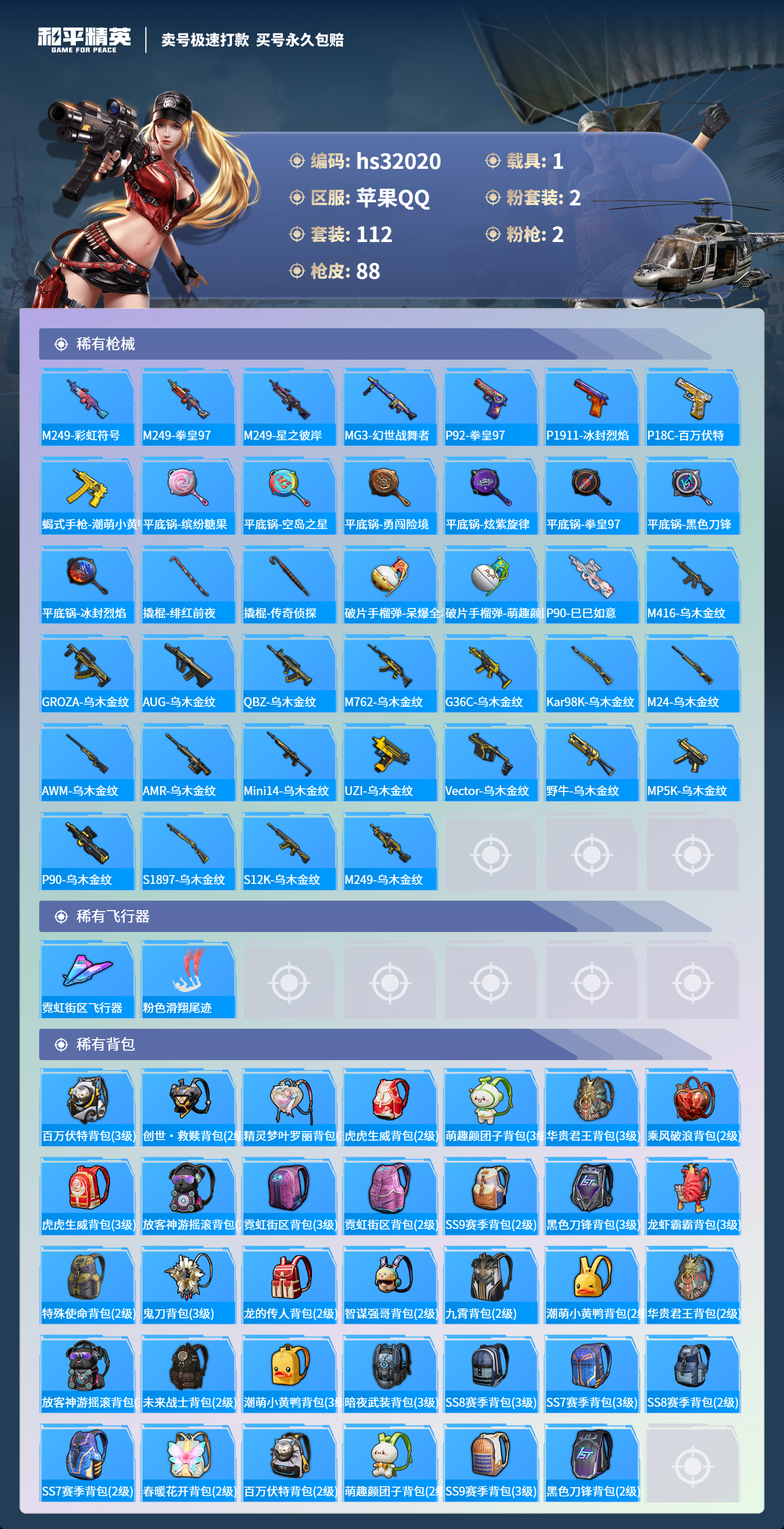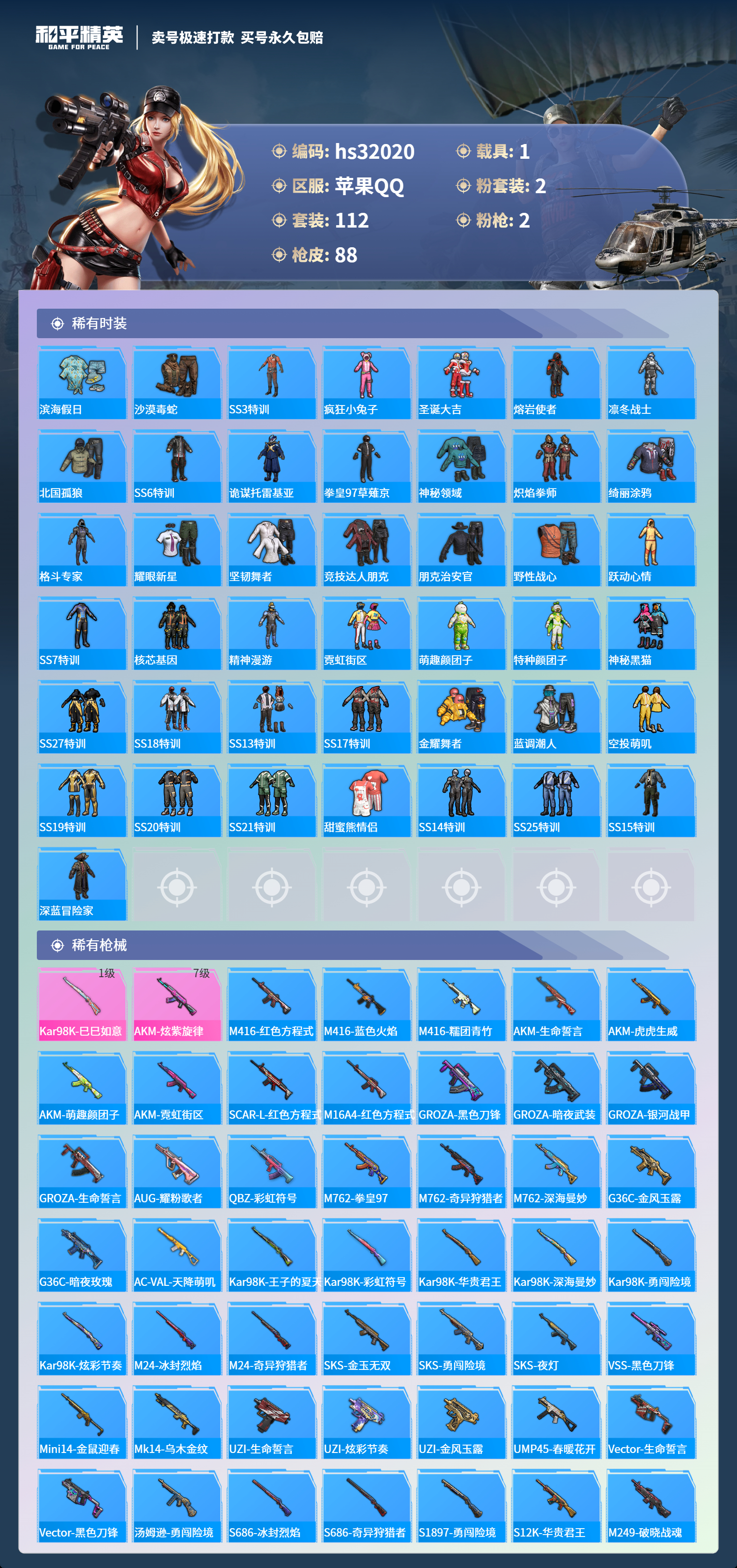 游戏区服:和平精英 / 苹果系统 / QQ帐号