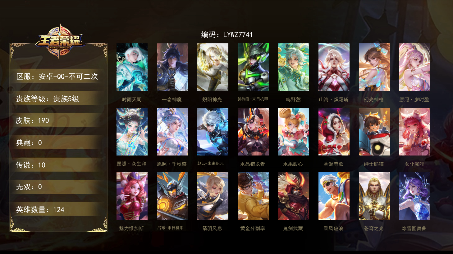 【10170060】【不可二次】【QQ(安卓)】化身博士 霸王丸 星界游侠 进击墨子号 暗影游猎 水晶猎龙者 原初探秘者 圣诞恋歌 哥特玫瑰 沙漠行僧 逐梦之音 胡桃夹子 龙腾万里 万华元夜 御銮 秘密基地 修罗 千军破阵 特工魅影 醍醐杖 危途狂花 古海寻踪 丁香结 阴阳师 忍·炎影 兔女郎 女武神 魅力维加斯 箭羽风息 功夫炙烤 海滩派对 妄想特派 御旌 大漠名商 缤纷绘卷 乘风破浪 天穹之