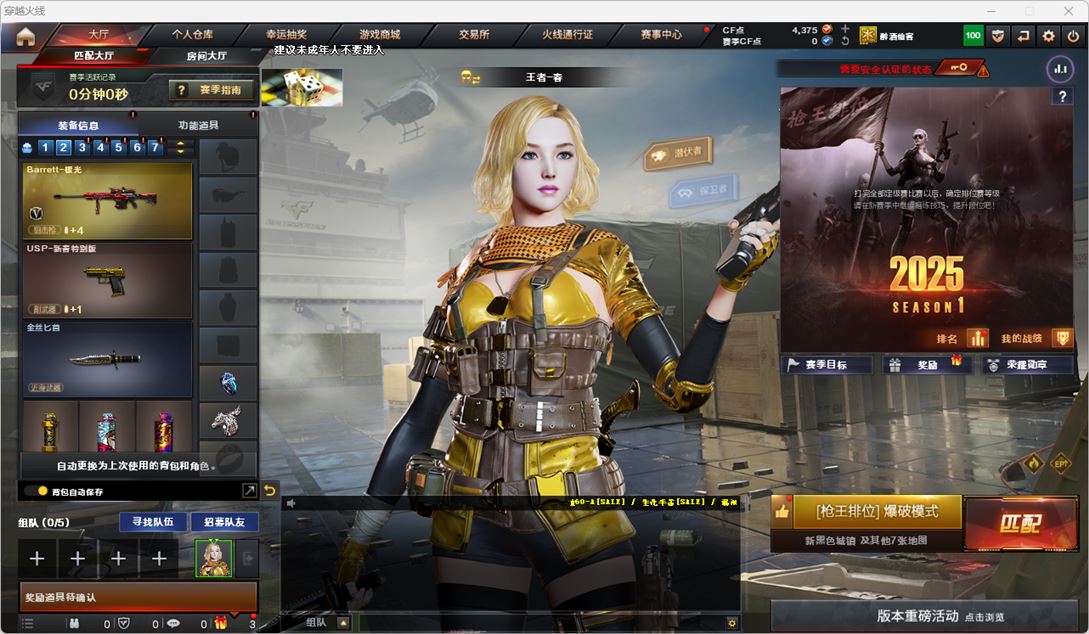 游戏区服:穿越火线 / 北部战区 / 山东一区互 通