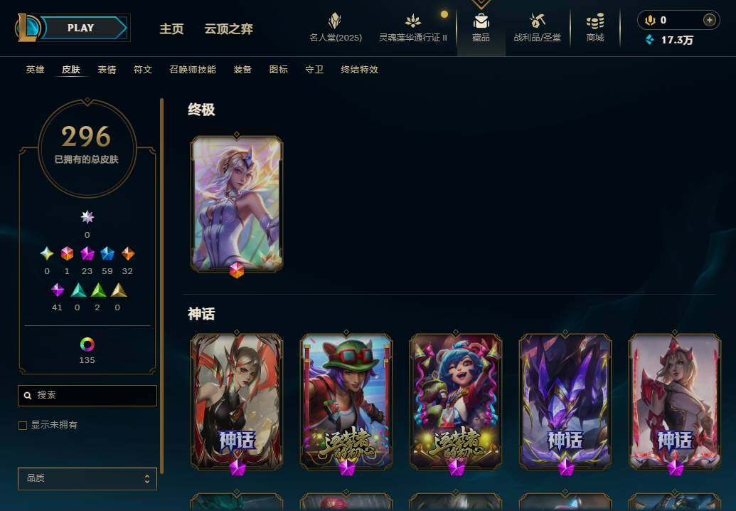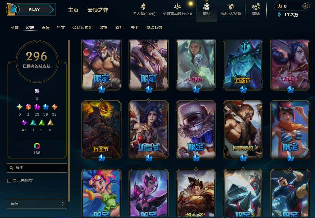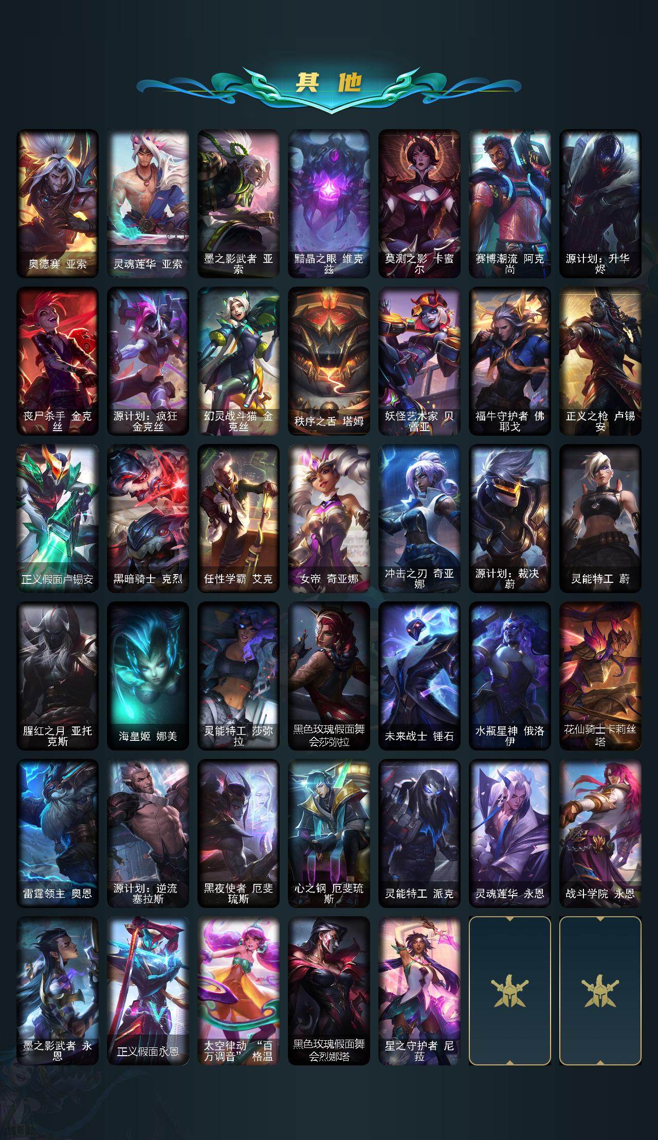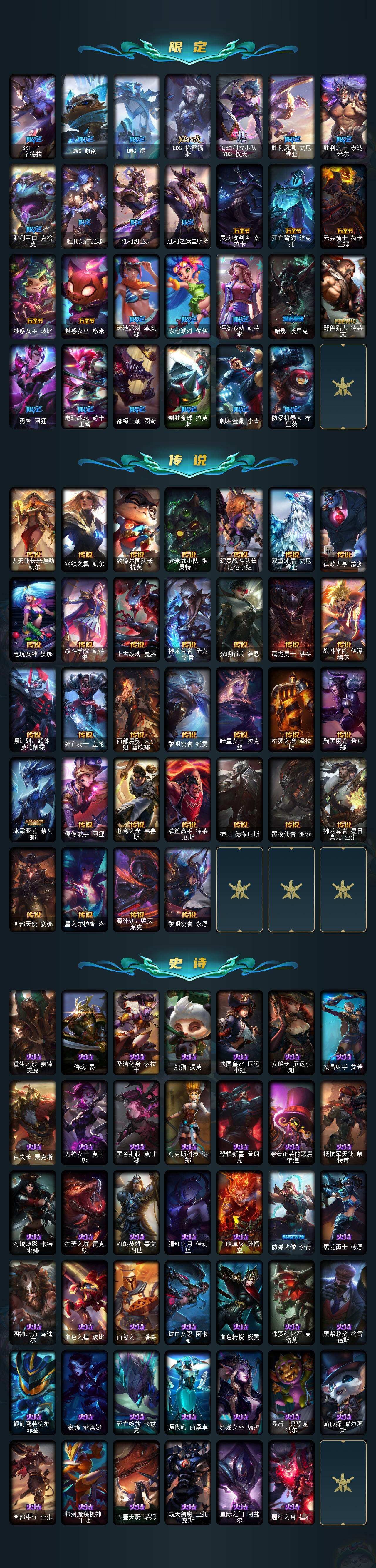 【10431715】【LD3276】171英雄/296皮肤/1终极/23神话/59限定/11臻彩/208炫彩/32传说/41史诗/铂金/至臻至高天凯尔/至臻绝息圣堂厄运小姐/至臻K/DA伊芙琳/至臻黑色玫瑰假面舞会卡特琳娜/至臻黑夜使者李青/至臻剪纸仙灵卡西奥佩娅/至臻魔女阿卡丽/至臻西部魔影猎天使恶魔泰隆/至臻玉剑传说武剑仙/至臻星之守护者辛德拉/至臻K/DAALLOUT卡莎/至臻幻灵战斗猫金