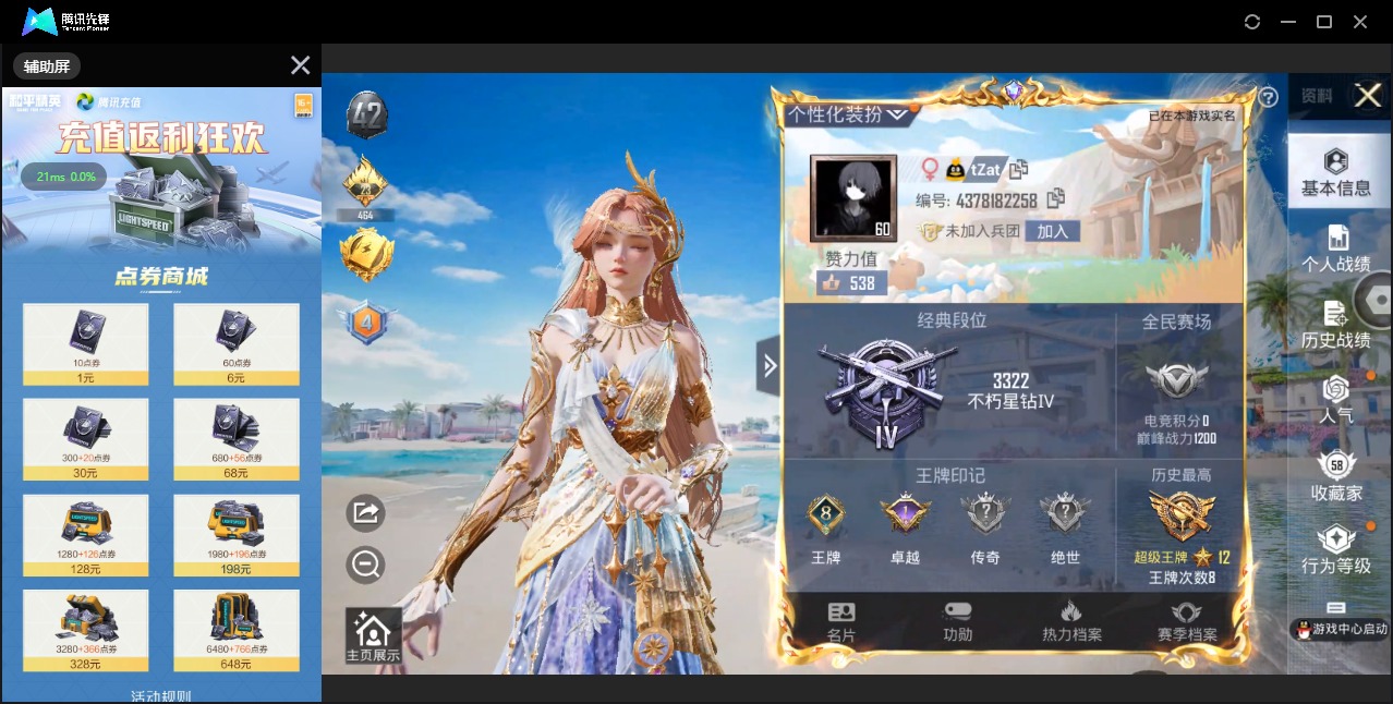 游戏区服:和平精英 / 苹果系统 / QQ帐号