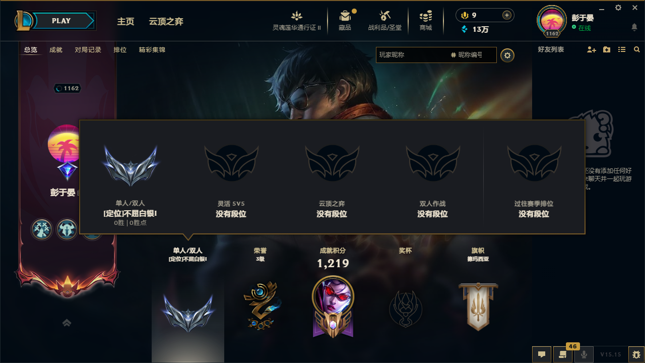 游戏区服:英雄联盟 / 网通 / 无畏先锋