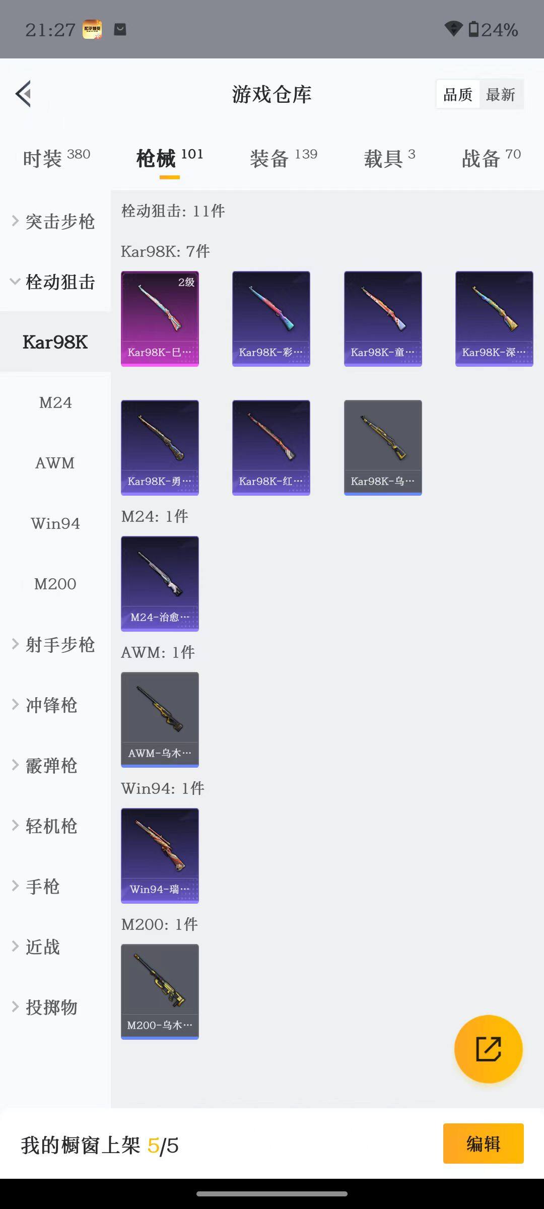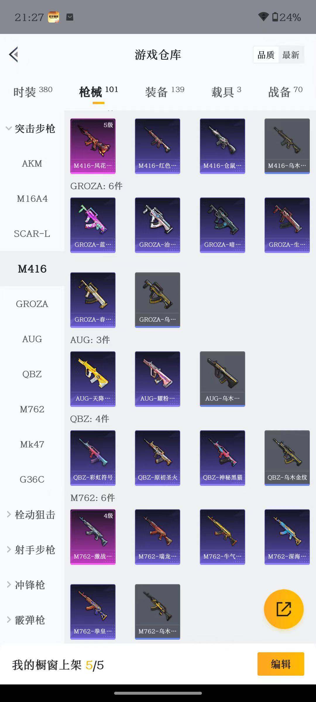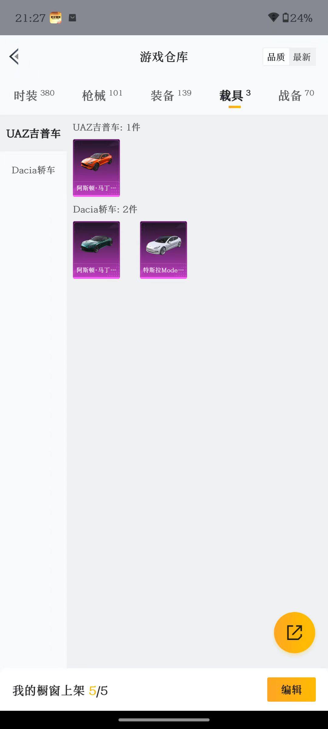【10642298】【可二次】【安卓QQ】M416-风花雪月 M762-激战未来 特斯拉3银色 花影阑珊 阿斯顿马丁X橙色 阿斯顿马丁S绿色