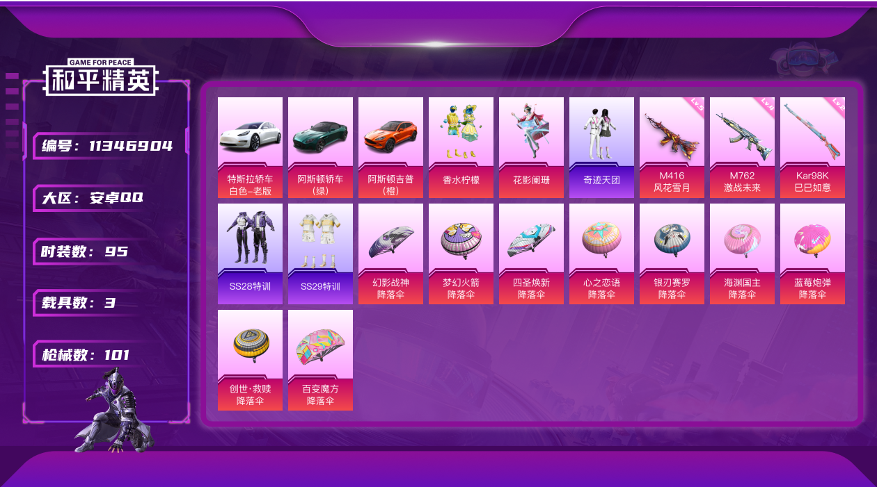 游戏区服:和平精英 / 安卓系统 / QQ账号