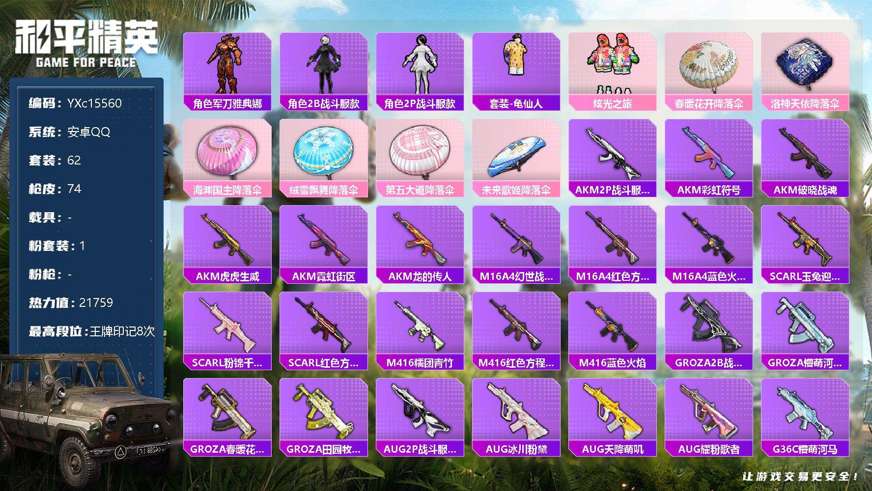 游戏区服:和平精英 / 安卓系统 / QQ账号