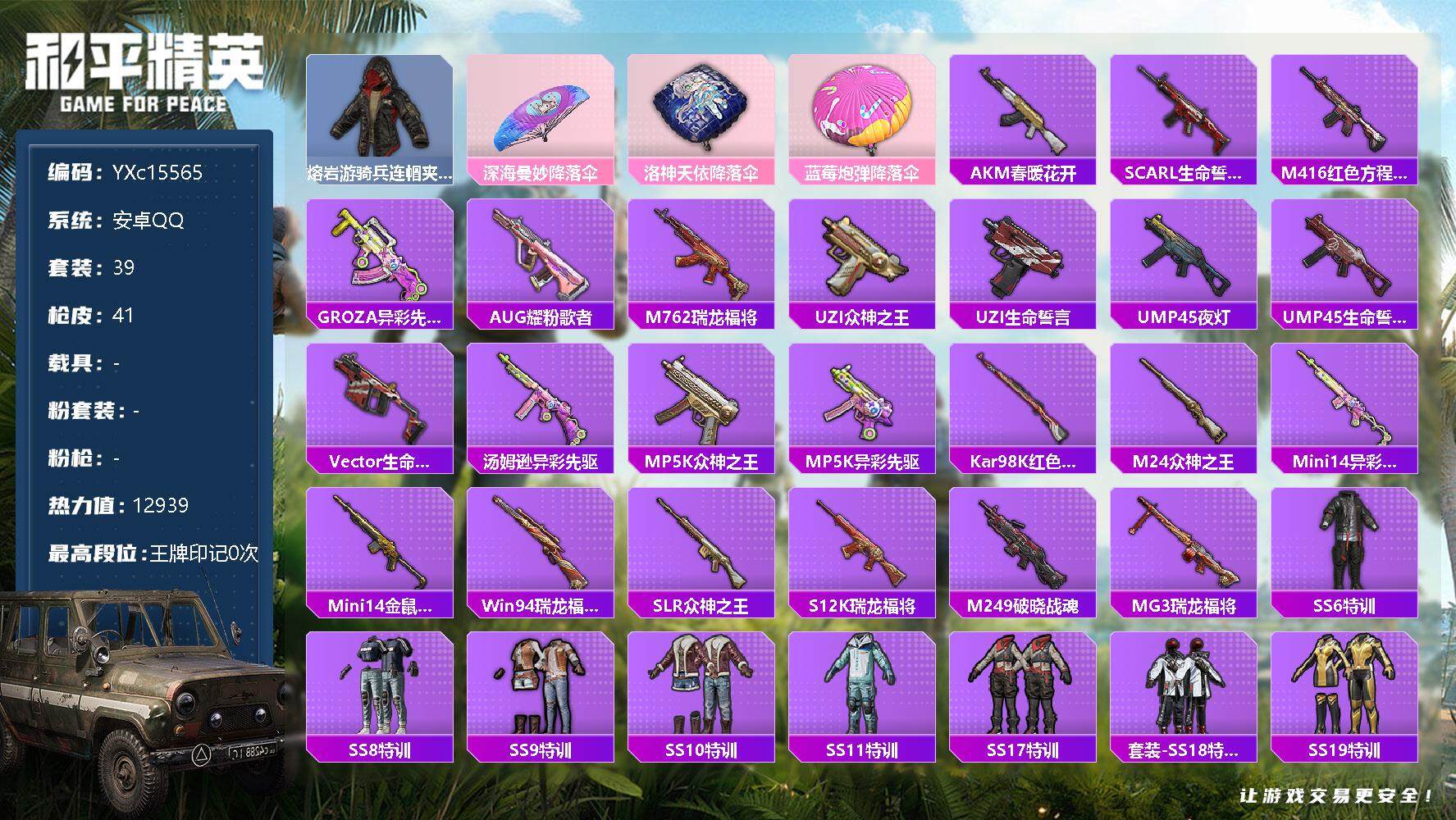 游戏区服:和平精英 / 安卓系统 / QQ账号