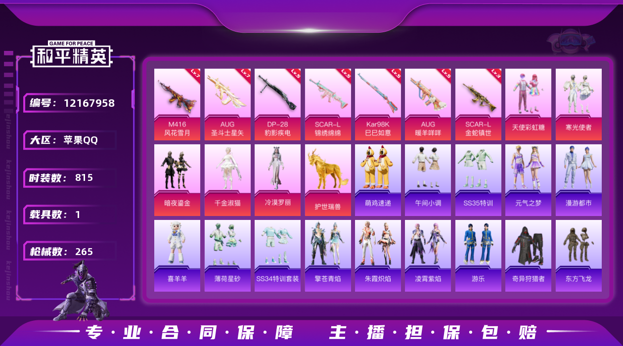 【10843192】【不可二次】【苹果QQ】SCAR-L-锦绣绵绵 M416-风花雪月 天使彩虹糖 奇异狩猎者 东方飞龙 派对舞王 激萌罗小黑