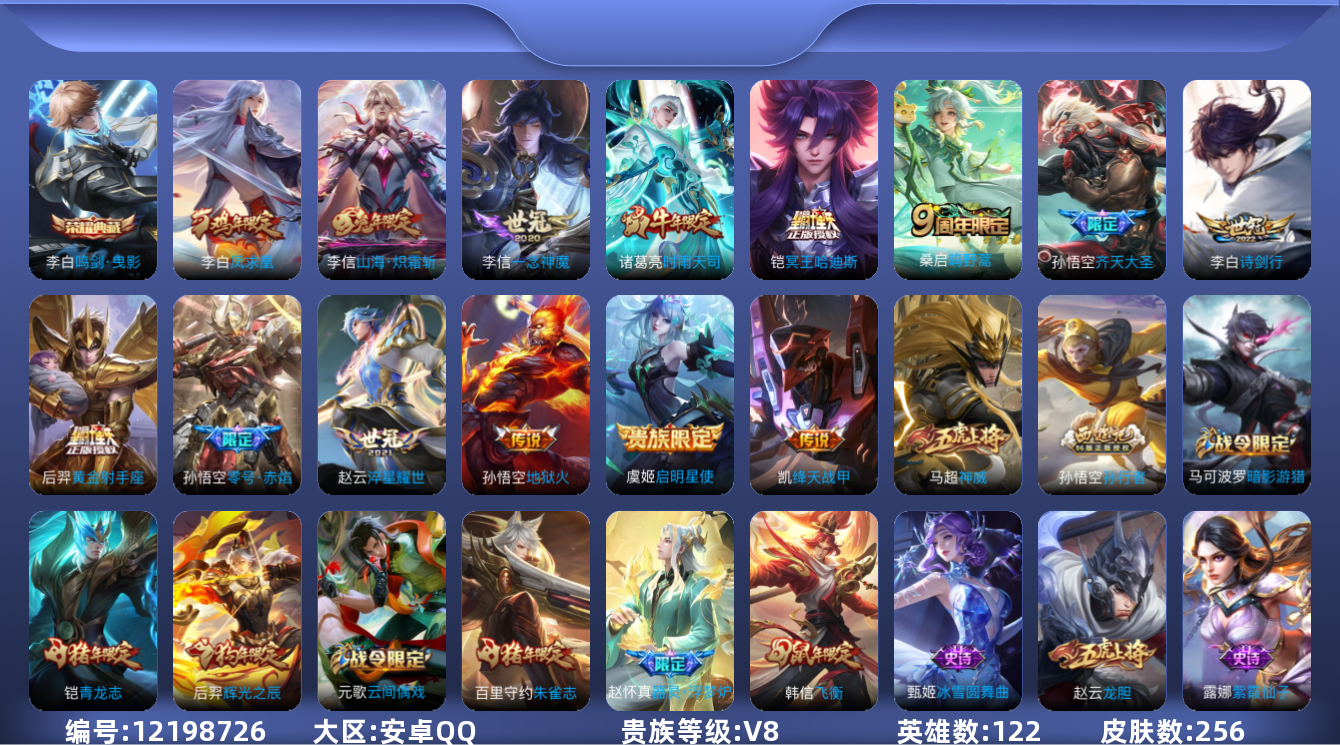 【10850319】【不可二次】【QQ(安卓)】御旌 弈星混沌棋 大漠名商 一念神魔 遇见飞天 原初探秘者 擒涛扼浪 沙漠行僧 演武夺筹 绛天战甲 御霄 淬星耀世 驱傩正仪 烛龙 飞衡 山海·炽霜斩 凤求凰 朔风刀 海盐诗旅 万华元夜 龙胆 地狱火 辉光之辰 高山流水 御狮 御銮 天狼溯光者 诗剑行 疑决卦 醍醐杖 黄金射手座 古海寻踪 神威 零号·赤焰 鸣剑·曳影 齐天大圣 梁祝 探海日记 李