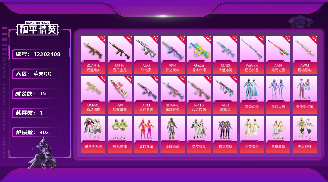 【10851307】【不可二次】【苹果QQ】龟仙人 恐龙拽拽 AKM-星际浪客 金曜白虎 漫步者 UMP45-恐龙拽拽 豚鼠丹丹 M762-奇异狩猎者 M416-心之恋语 SCAR-童趣迷兔 AWM-黄金龙骨 AKM-奇异狩猎者 紫电风暴 M762-瑞龙福将 新侠客行 狂沙舞者 龙翔九天飞行器 金羽特工 百合蜜语 香水柠檬 AKM-梦之光华 金耀白虎 天之羽翼飞行器 M762-冷魅冰骑 焦糖拿铁