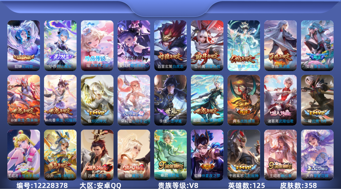 【10857760】【不可二次】【QQ(安卓)】一念神魔 原初探秘者 挚爱花嫁 凤求凰 朔风刀 仲夏夜之梦 天狼运算者 万华元夜 高山流水 御銮 凯尔特女王 疑决卦 醍醐杖 古海寻踪 音你闪耀 白晶晶 李小龙 云中旅人 久胜战神 云鹰飞将 穷奇 御旌 弈星混沌棋 大漠名商 山海·碧波行 时之彼端 炽阳神光 遇见飞天 白虎志 祈雪灵祝 周瑜音你心动 演武夺筹 驱傩正仪 海盐诗旅 后裔:如梦令 御狮
