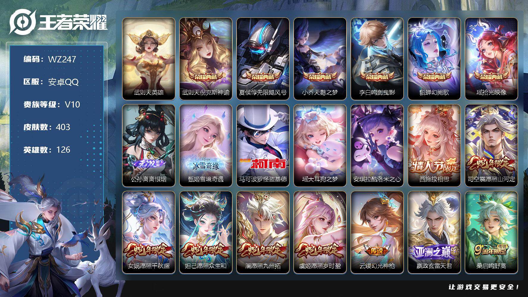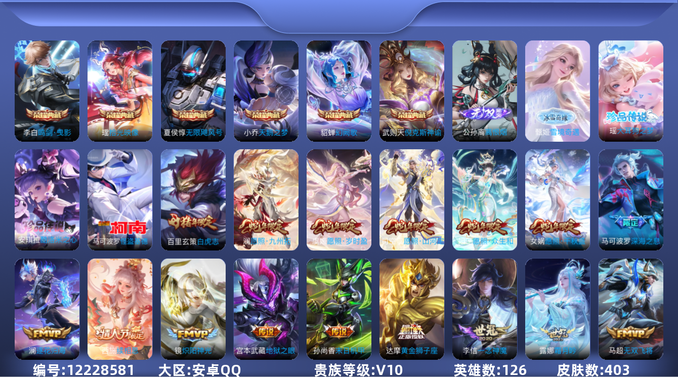 【10857792】【可二次】【QQ(安卓)】影龙天霄 一念神魔 地狱之眼 玄武志 武则天 黄金白羊座 岱宗 沙漠行僧 淬星耀世 天鹅之梦 仲夏夜之梦 电玩·雷克斯 万华元夜 高山流水 诗剑行 离恨烟 海洋之心 古海寻踪 探海日记 无限飓风号 胖达荣荣 深海之息 逐花归海 云中旅人 久胜战神 云鹰飞将 冰锋战神 瑞麟志 大漠名商 炽阳神光 冠军飞将 拾光映像 无双飞将 觅芳踪 擒涛扼浪 白虎志
