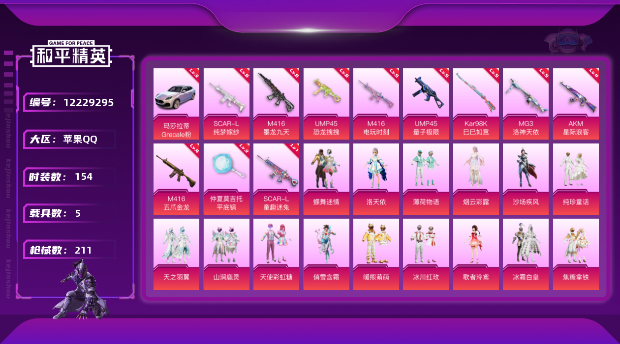 【10857887】【可二次】【苹果QQ】焦糖拿铁 沙场疾风 焰龙咆哮 M416-五爪金龙 MG3-洛神天依 洛天依 UMP45-恐龙拽拽 天使彩虹糖 山涧鹿灵 SCAR-童趣迷兔 玛莎拉蒂粉色 薄荷物语 蝶舞迷情 甜蜜誓约 天之羽翼
