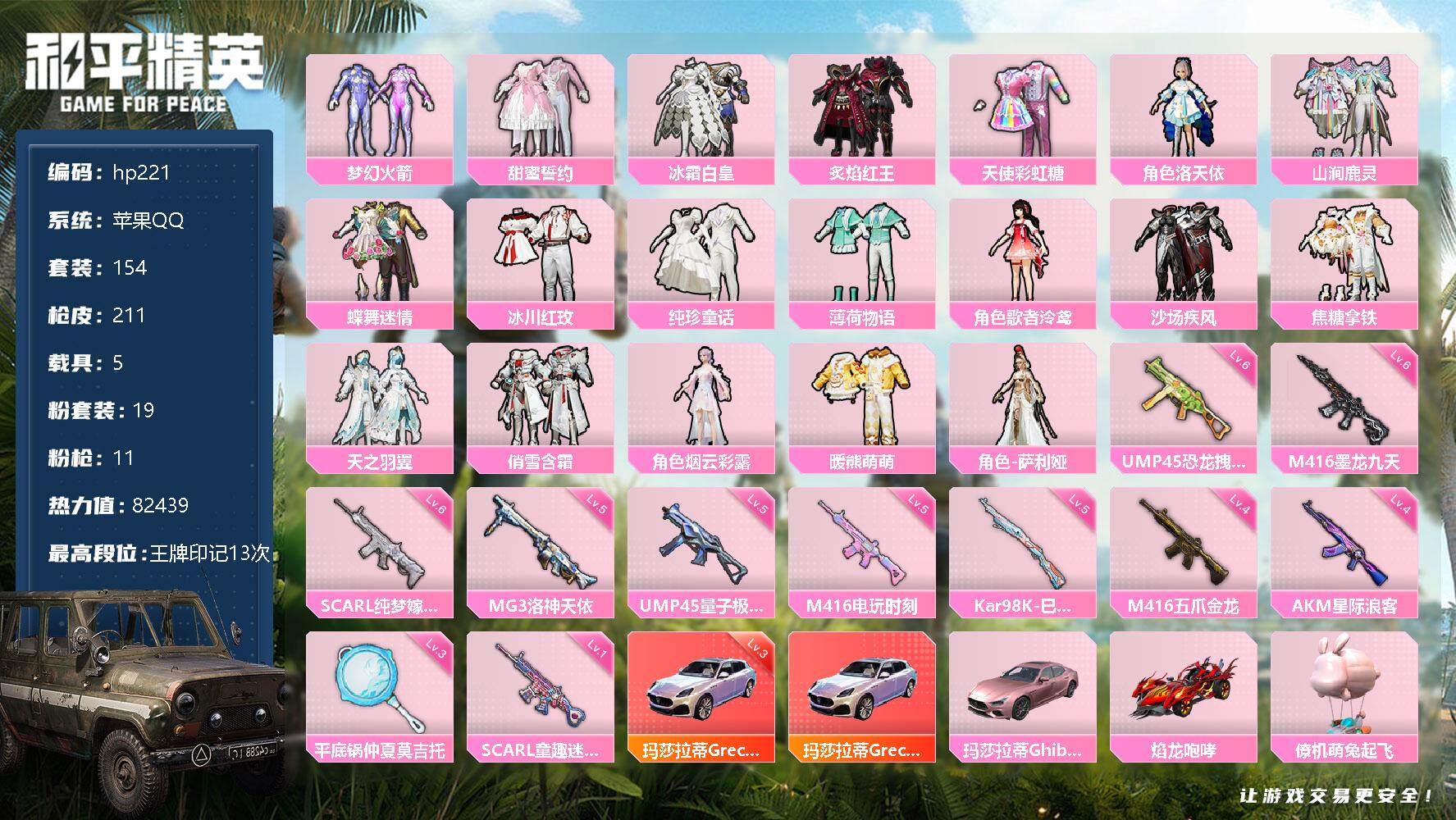 游戏区服:和平精英 / 苹果系统 / QQ帐号