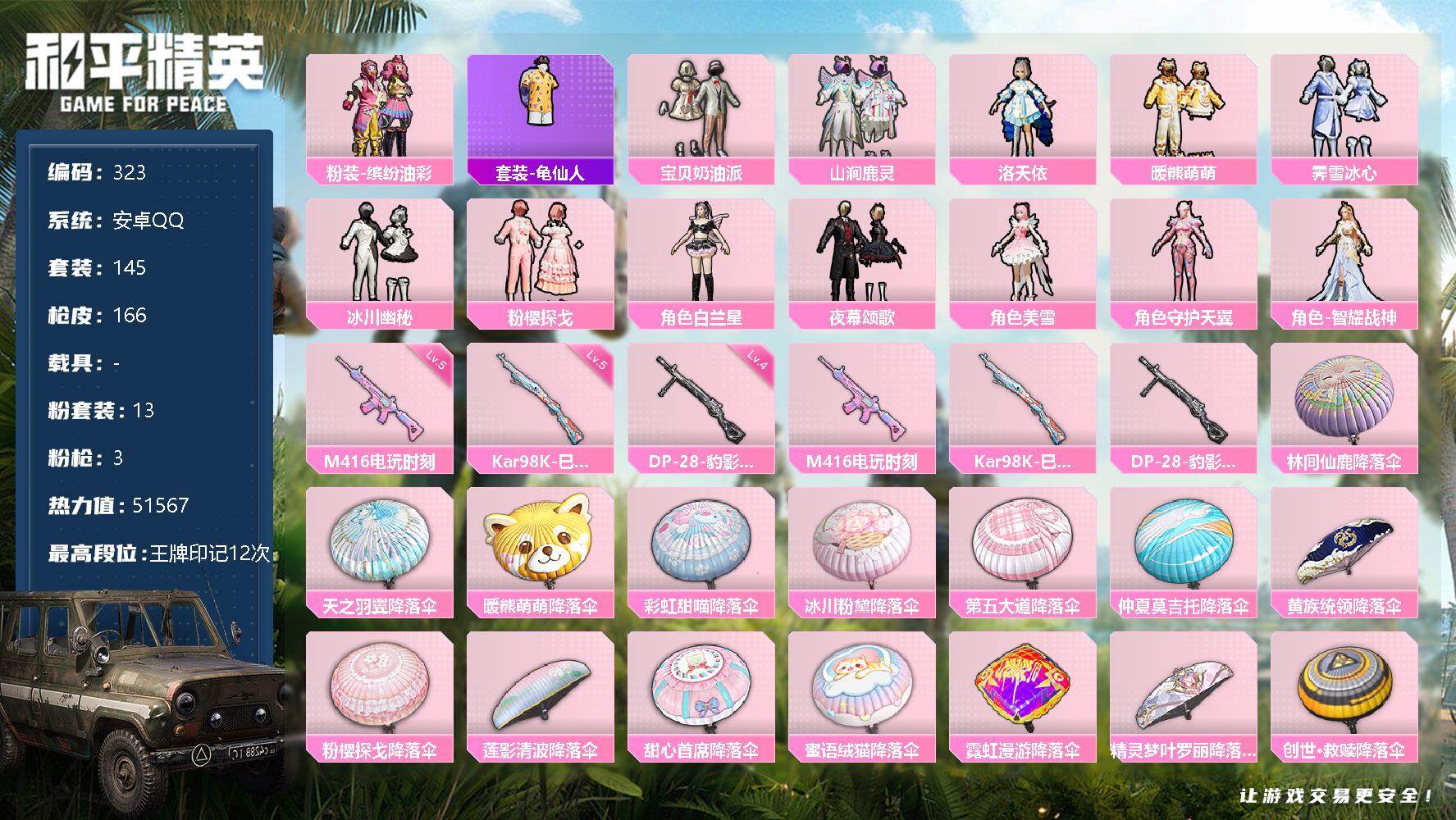 游戏区服:和平精英 / 安卓系统 / QQ账号