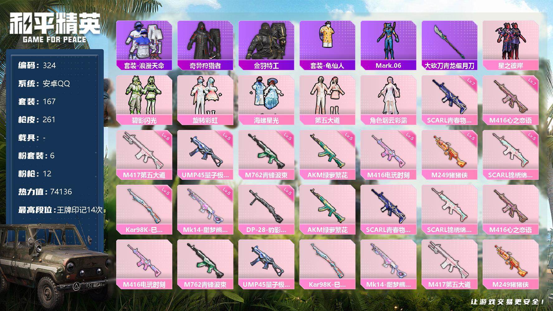 游戏区服:和平精英 / 安卓系统 / QQ账号