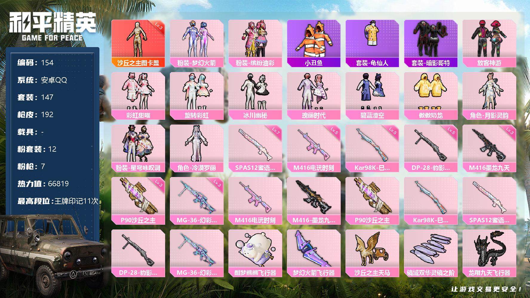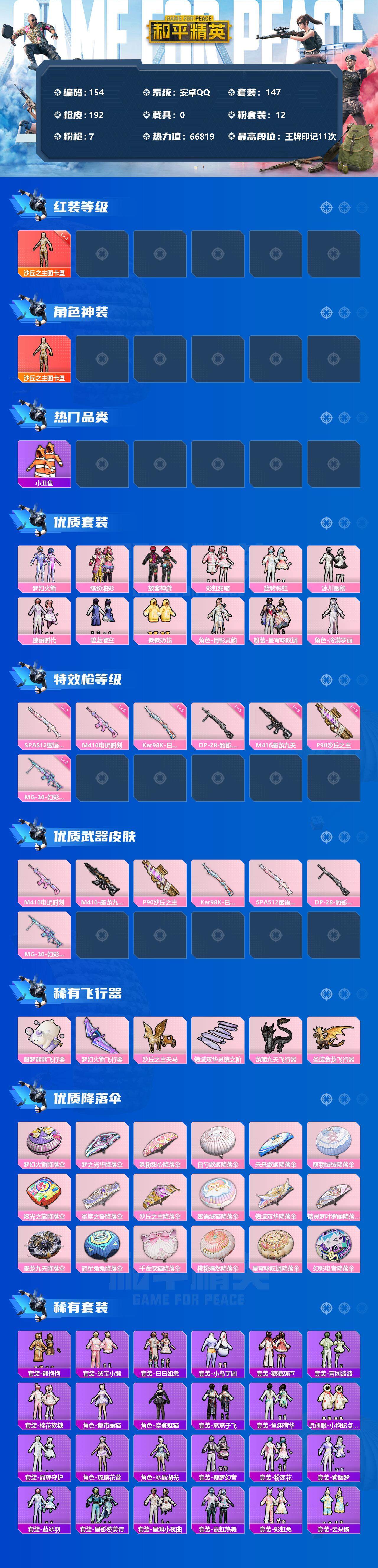 游戏区服:和平精英 / 安卓系统 / QQ账号