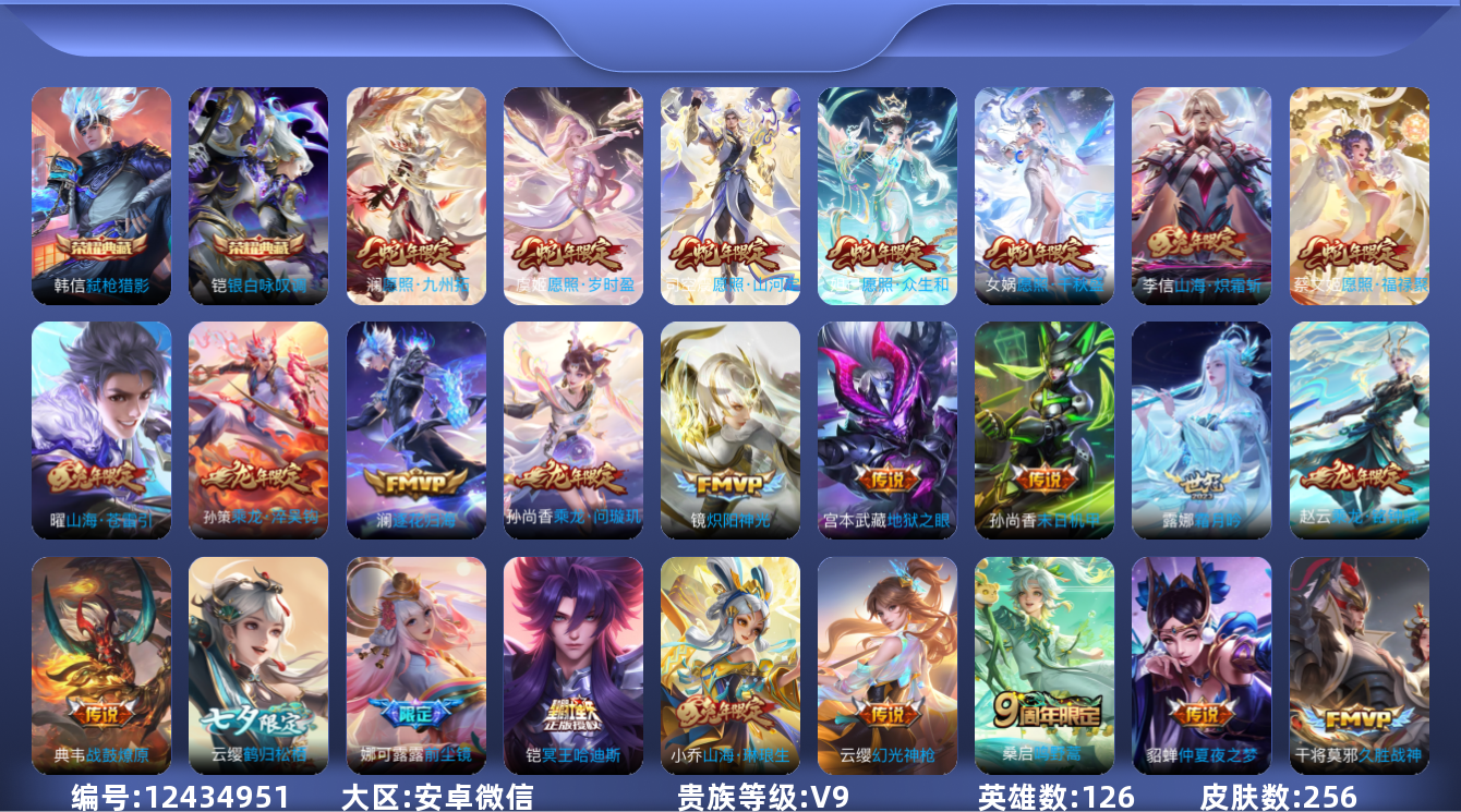 【10906012】【可二次】【微信(安卓)】星界游侠 鹰眼统帅 水晶猎龙者 晚萤 美猴王 圣诞恋歌 星夜王子 沙漠行僧 紫霞仙子 炽弈燎原 前尘镜 仲夏夜之梦 山海·苍雷引 银白咏叹调 缤纷独角兽 万华元夜 特工魅影 诗剑行 启示之音 德古拉伯爵 江河有灵 古海寻踪 丁香结 电玩小子 鹤归松栖 荣光圣徽 魅力维加斯 战鼓燎原 久胜战神 箭羽风息 青焰无极 乘风破浪 遇见飞天 擒涛扼浪 圣诞狂欢