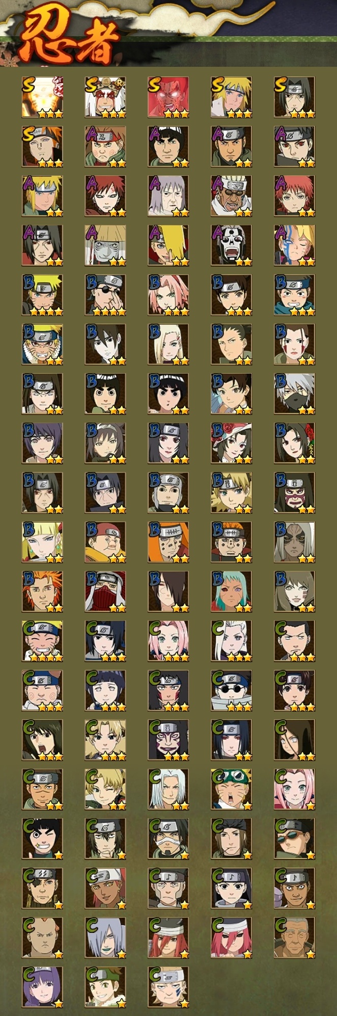 [12747560]贵族等级: V2 S忍数: 6 A忍数: 14 战力值(万): 4778300 S级忍者: 佩恩「天道」,波风水门,宇智波鼬 「须佐能乎」,迈特凯「死门」,自来也 「舞之豪杰」,漩涡鸣人 「九喇嘛连结」 通灵兽: 忍犬,忍龟,蛤蟆吉,蓝蛇,猿魔,蛤蟆仙人,镰鼬,山椒鱼,蜃,鲛鲨,蛤蟆健,乌鸦,蛤蟆龙,砂之守鹤