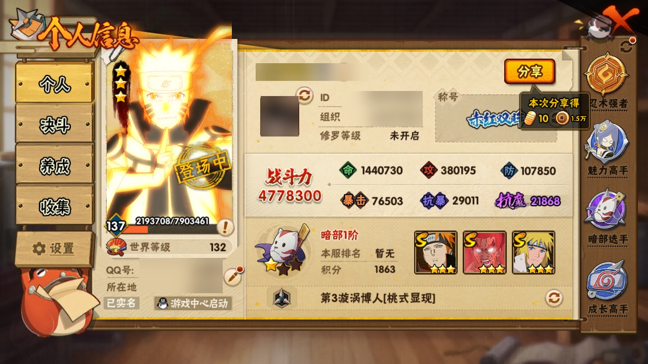 游戏区服:火影忍者(手游) / 安卓系统 / 安卓账号