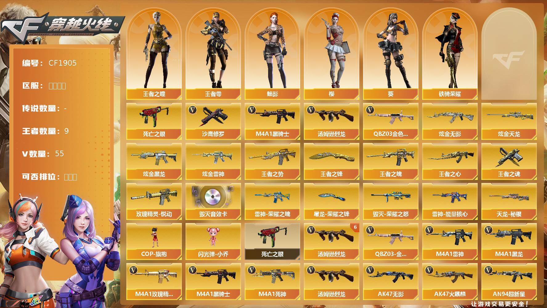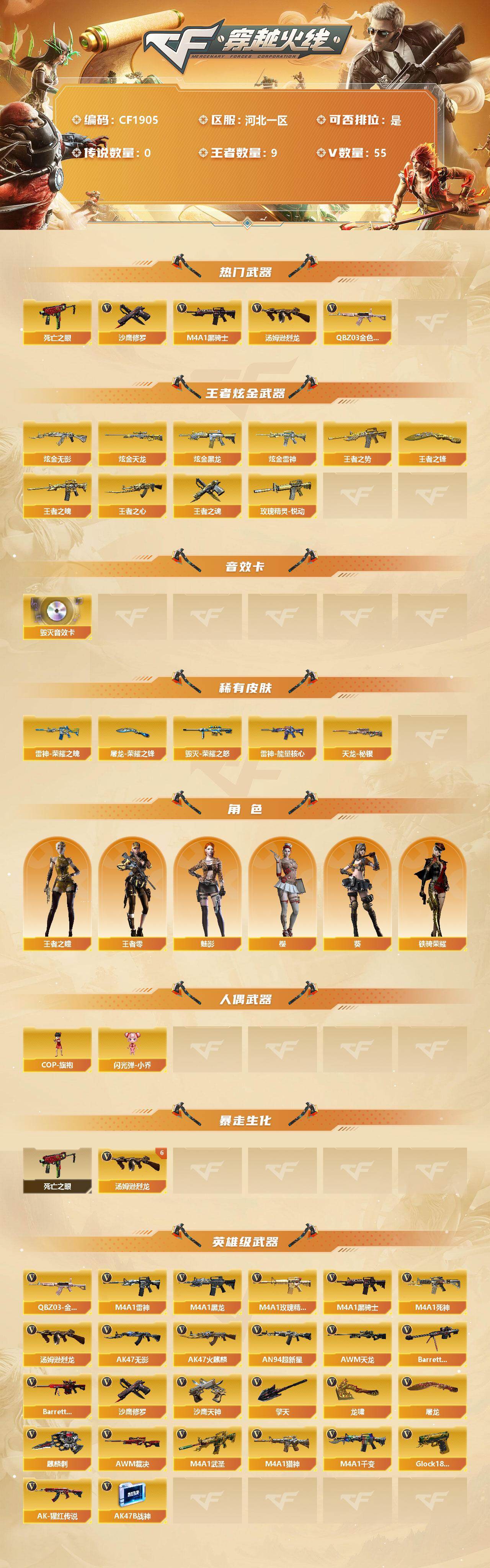 【11045193】【11045193】[13070351]河北一区-55V-9王者-4炫金【6烈龙】【死亡之眼】【AWM-裁决】【QBZ03-金色蔷薇】【汤