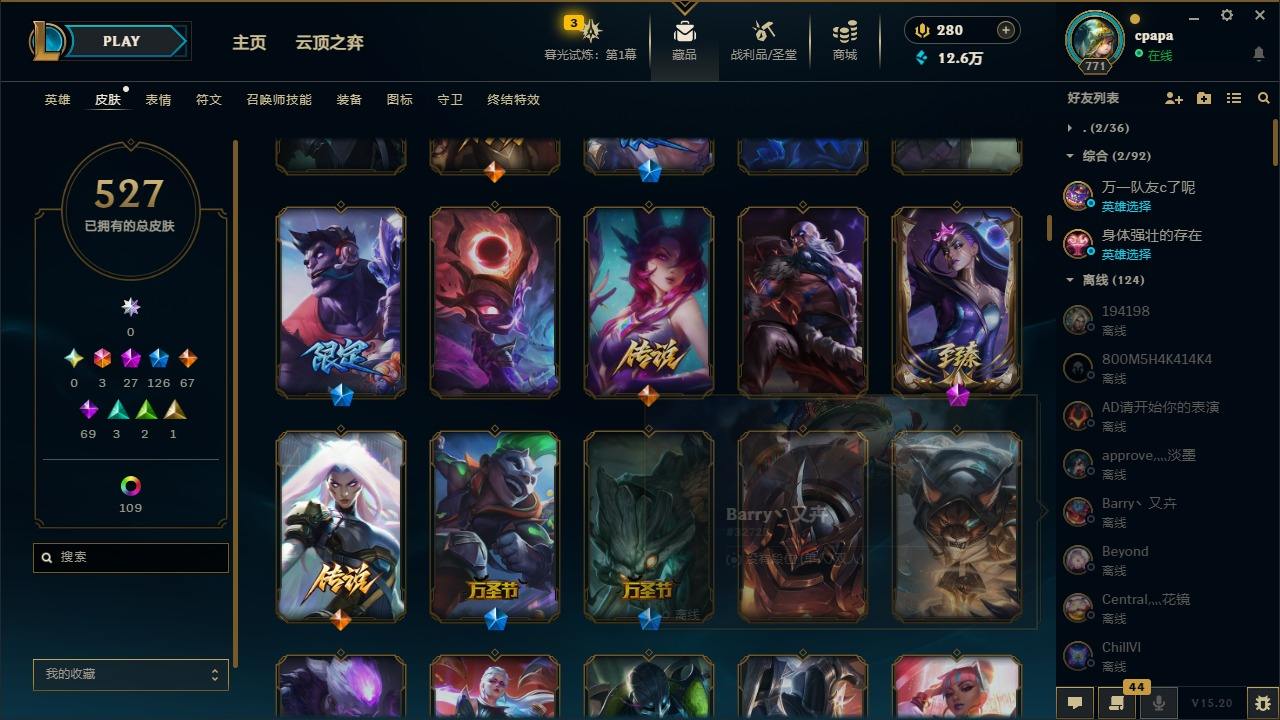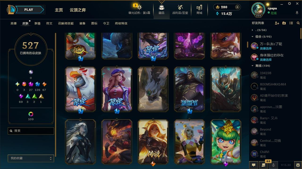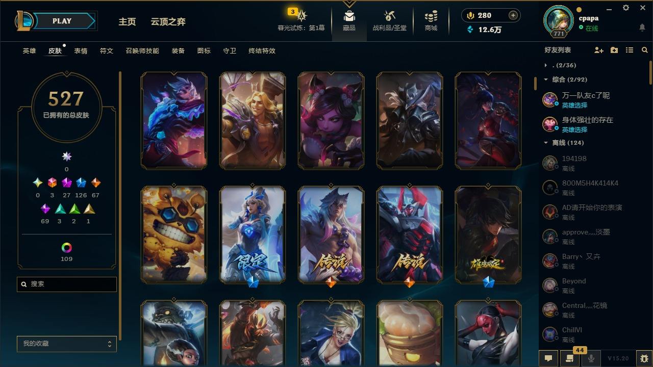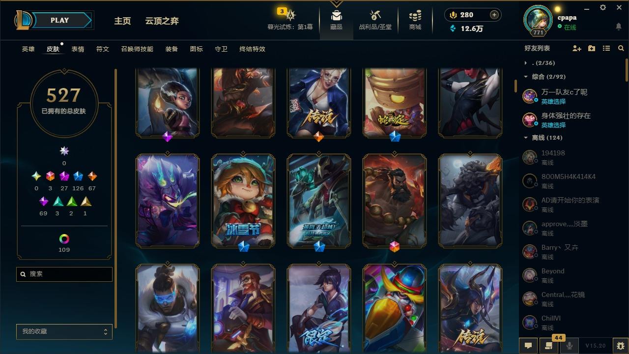 【11058274】[13127186]3终极 27神话 126限定 67传说 69史诗 527皮肤 131炫彩 168英雄 可二次 可修改实名 【至臻】:至臻 天龙之子 伊泽瑞尔,至臻 玉剑传说 琴仙子,至臻 暗星女王 黛安娜,至臻 黑夜使者 李青,至臻 灵能特工 伊泽瑞尔,至臻 K/DA ALL OUT卡莎,至臻 源计划:逆流 塞拉斯,至臻 魔女 乐芙兰,至臻 神龙尊者均衡之龙 沃利贝尔,至