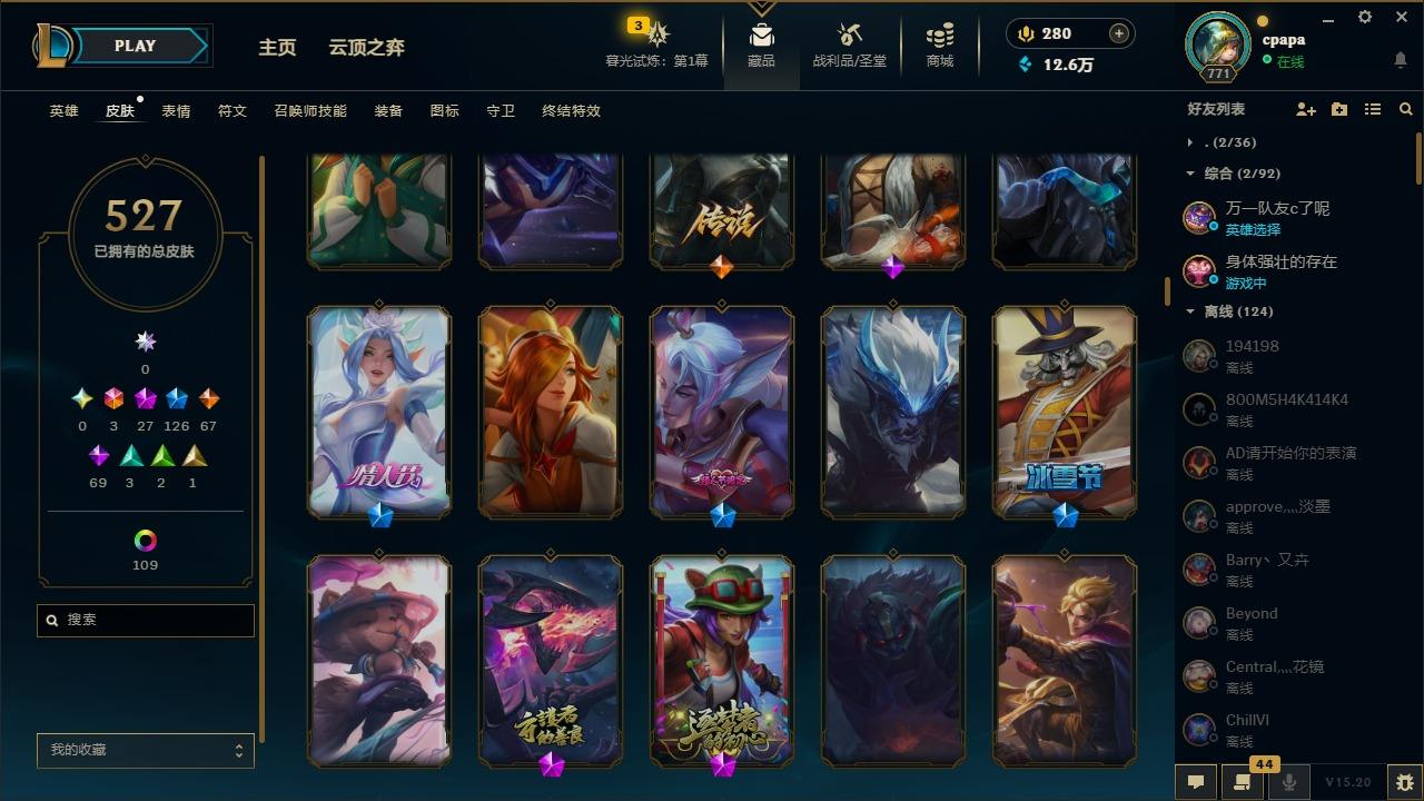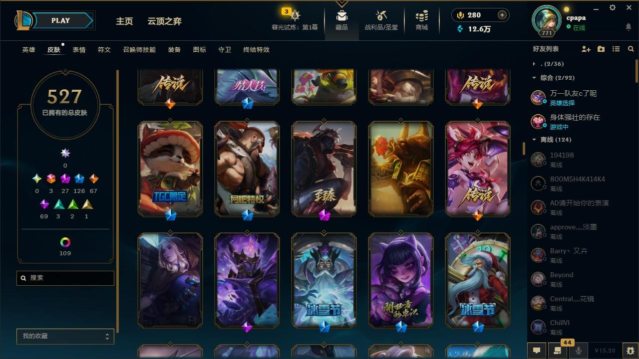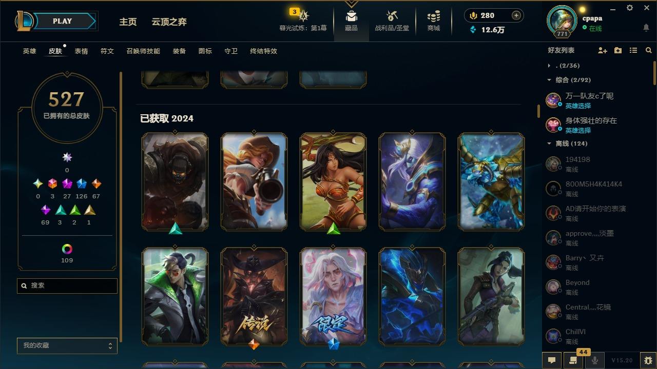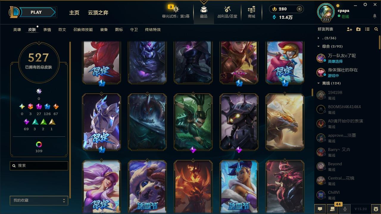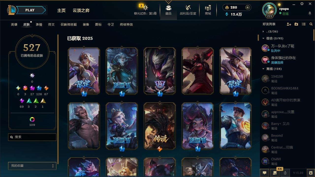 【11058274】[13127186]3终极 27神话 126限定 67传说 69史诗 527皮肤 131炫彩 168英雄 可二次 可修改实名 【至臻】:至臻 天龙之子 伊泽瑞尔,至臻 玉剑传说 琴仙子,至臻 暗星女王 黛安娜,至臻 黑夜使者 李青,至臻 灵能特工 伊泽瑞尔,至臻 K/DA ALL OUT卡莎,至臻 源计划:逆流 塞拉斯,至臻 魔女 乐芙兰,至臻 神龙尊者均衡之龙 沃利贝尔,至