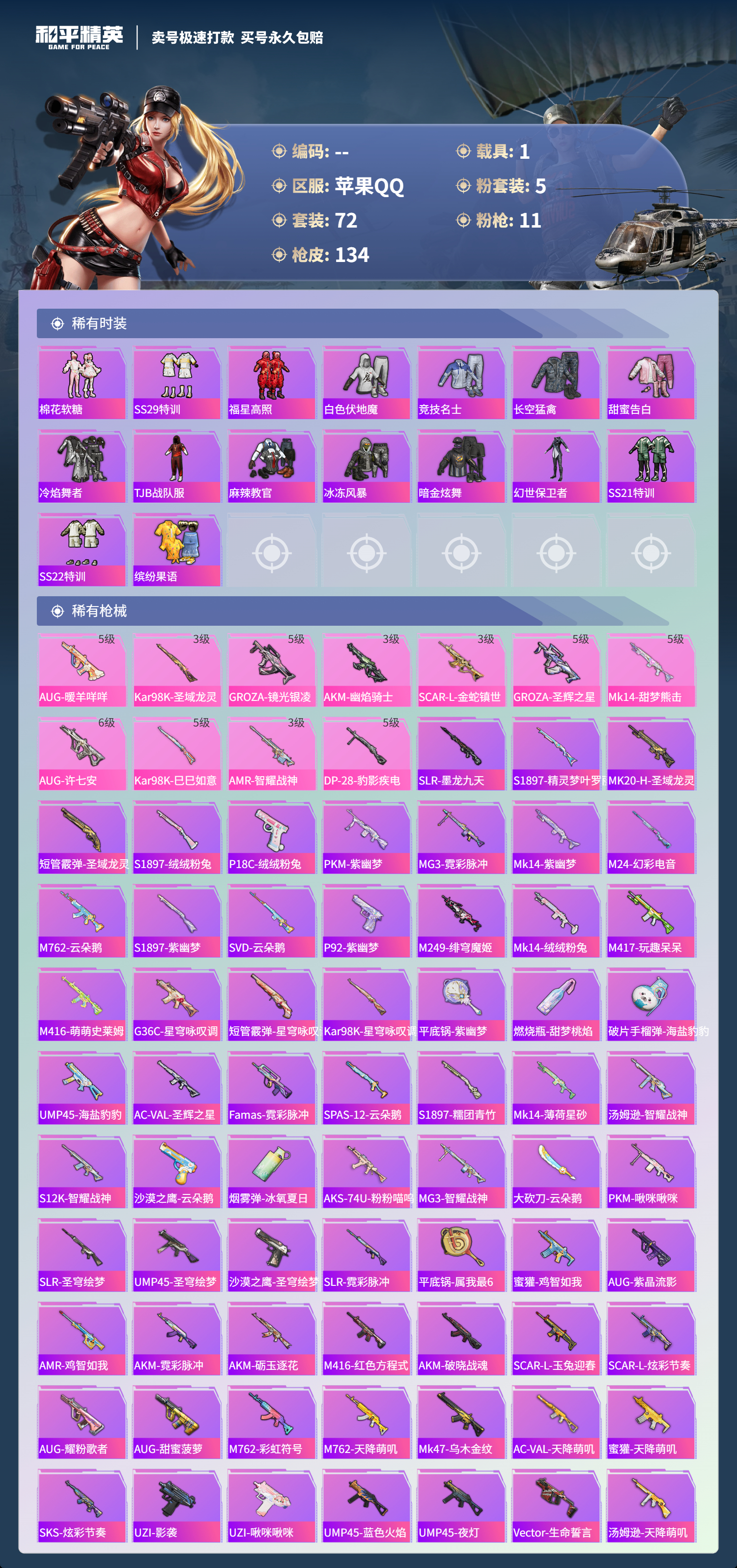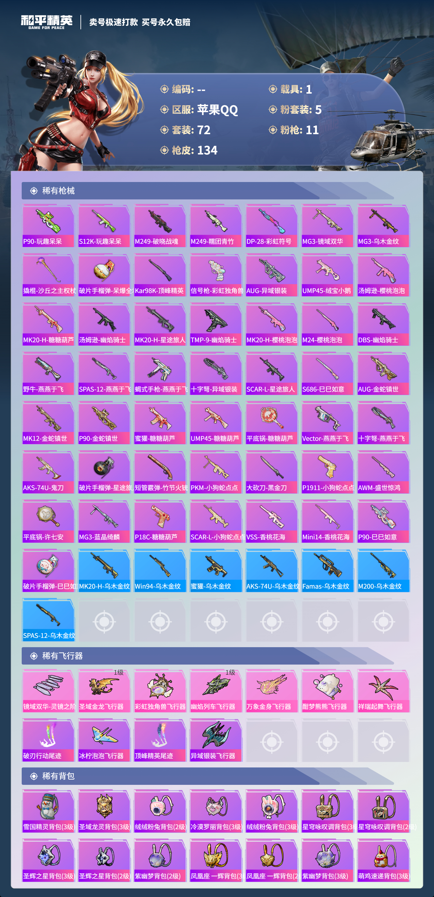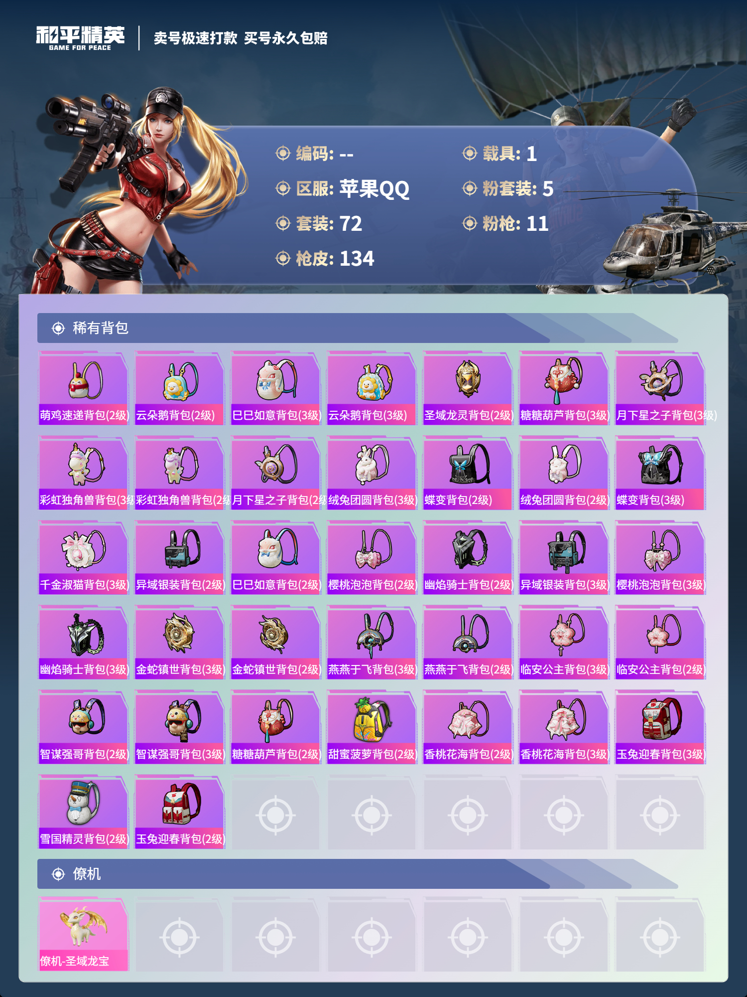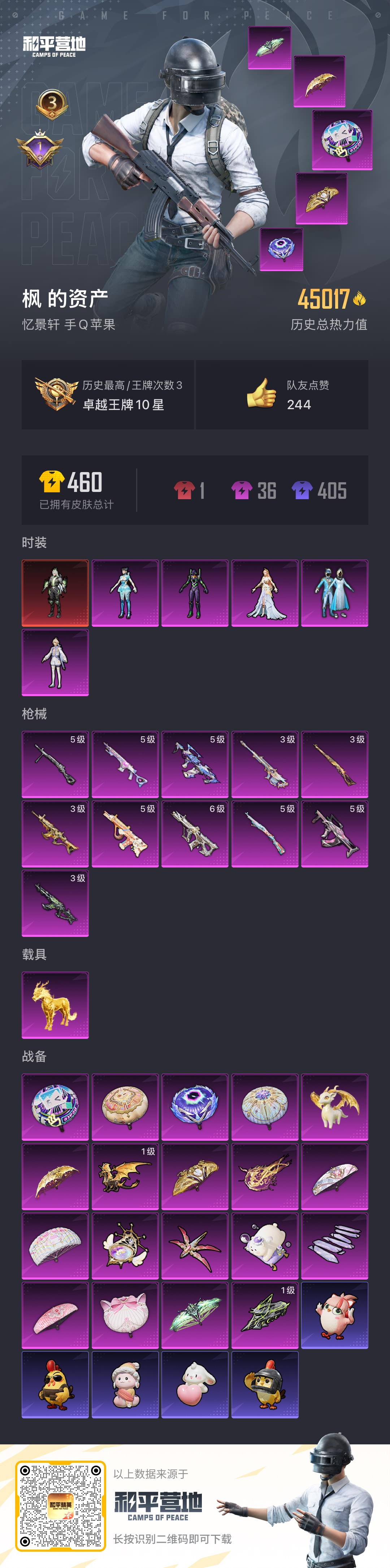 游戏区服:和平精英 / 苹果系统 / QQ帐号