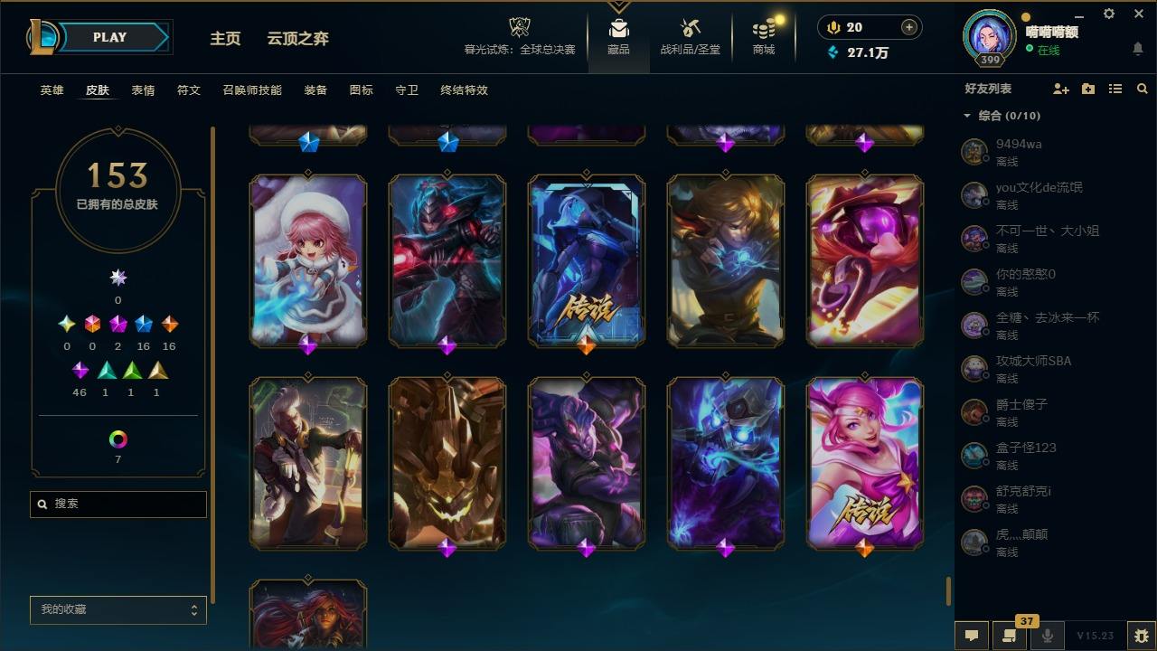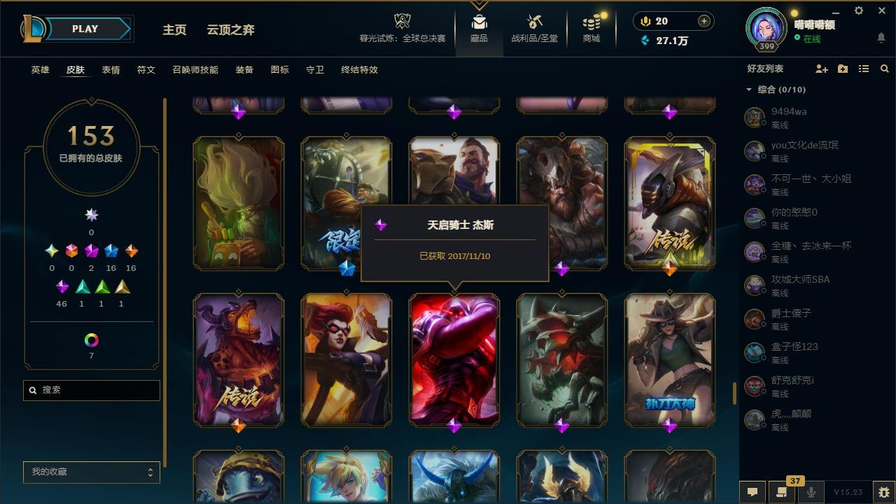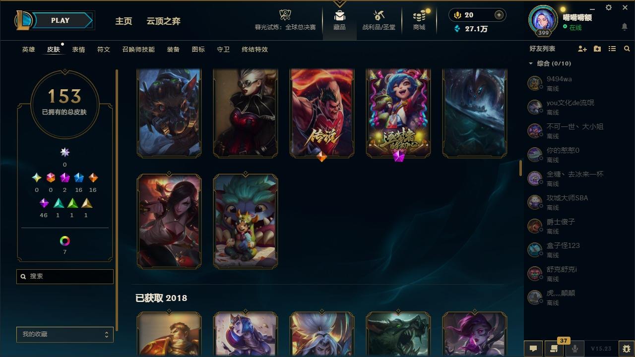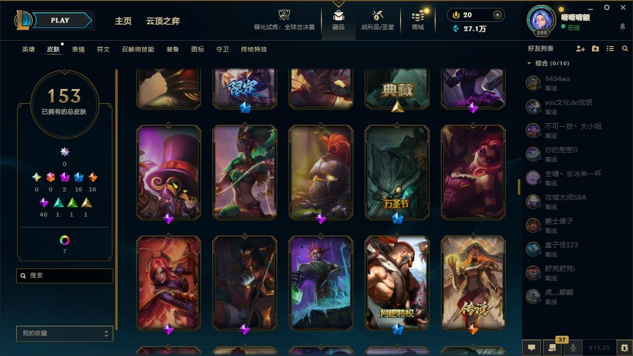 【108632】[14343799]2神话 16限定 16传说 46史诗 153皮肤 10炫彩 171英雄 可二次 可修改实名 【海克斯】:海克斯 吉格斯 【赛季限定皮】:胜利之树 茂凯,胜利枪神 格雷福斯,胜利女神 奥莉安娜,胜利之剑 亚托克斯,胜利枪神 卢锡安,胜利女神 瑟庄妮 【冠军限定系列】:S1FNC 酒桶,S7 SSG 伊泽瑞尔 【冰雪节限定】:邪恶圣诞老人 维迦 【万圣节限定】: