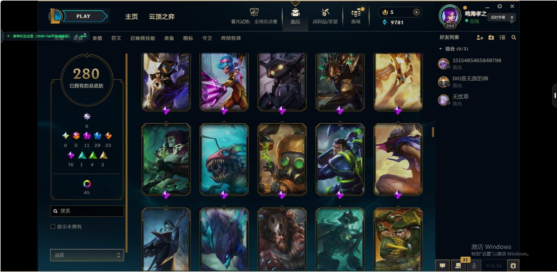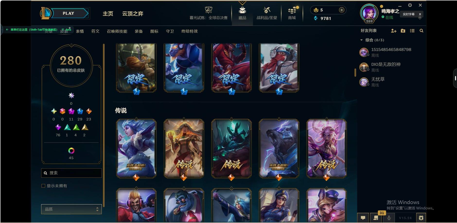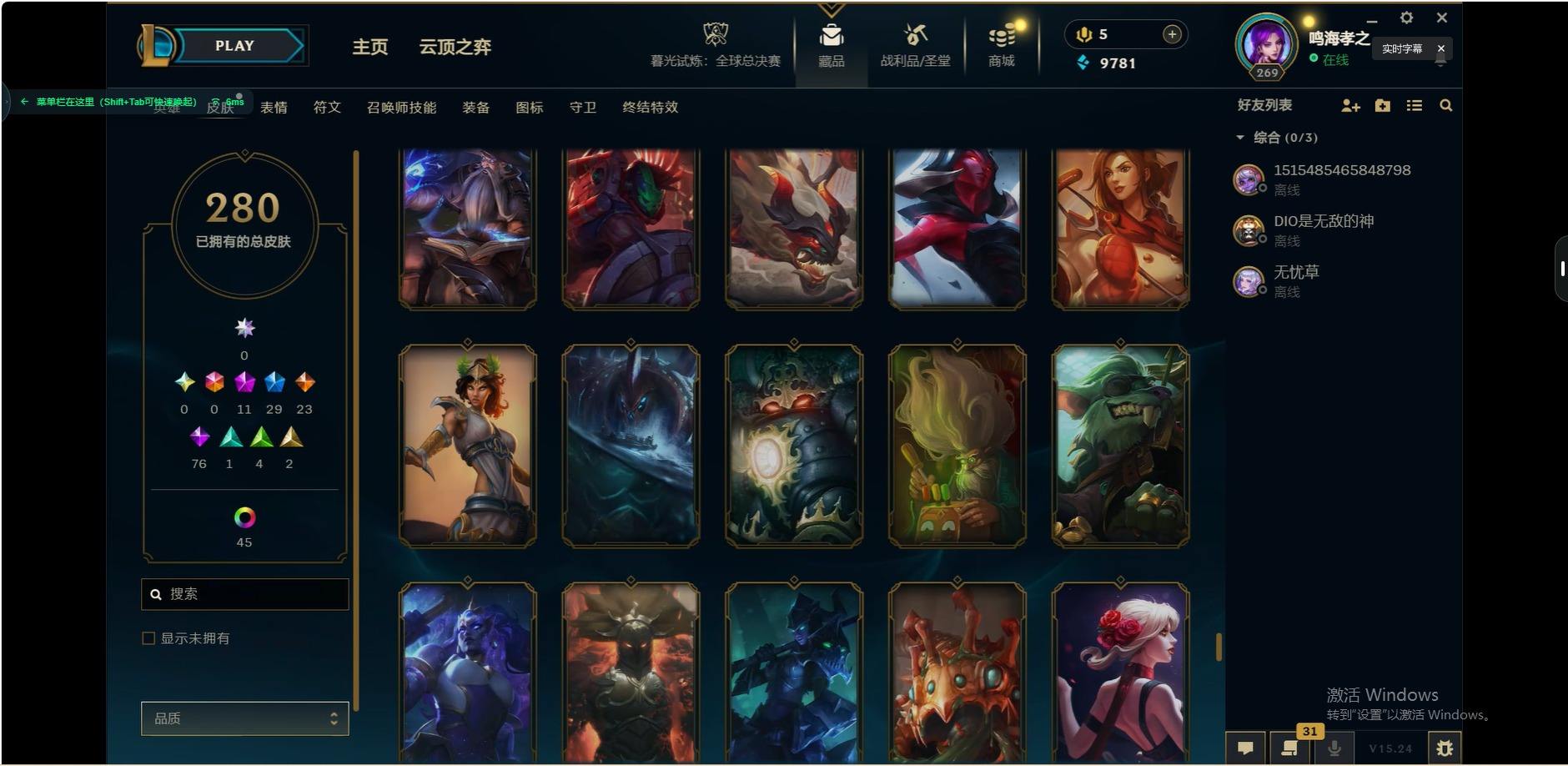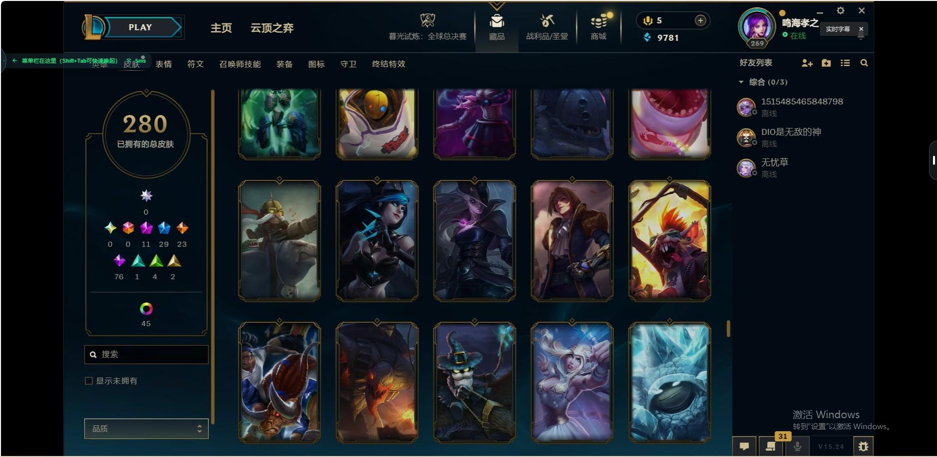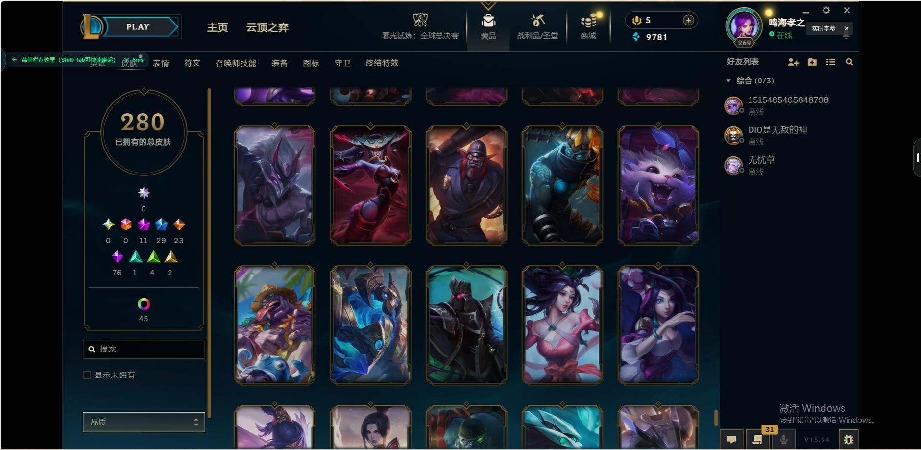 【120302】[14426689]11神话 29限定 23传说 76史诗 280皮肤 51炫彩 169英雄 可二次 可修改实名 【至臻】:至臻 北极星钢影 卡蜜尔,至臻 腥红之月 亚托克斯,至臻 玉剑传说 武剑仙,至臻 黑夜使者 李青,至臻 暗星 墨菲特,至臻 灵魂莲华 提莫,水晶圣骑 艾希 【海克斯】:海克斯 嘉文四世,海克斯 雷克顿 【赛季限定皮】:胜利女神 娑娜,胜利巨口 克格莫,胜利